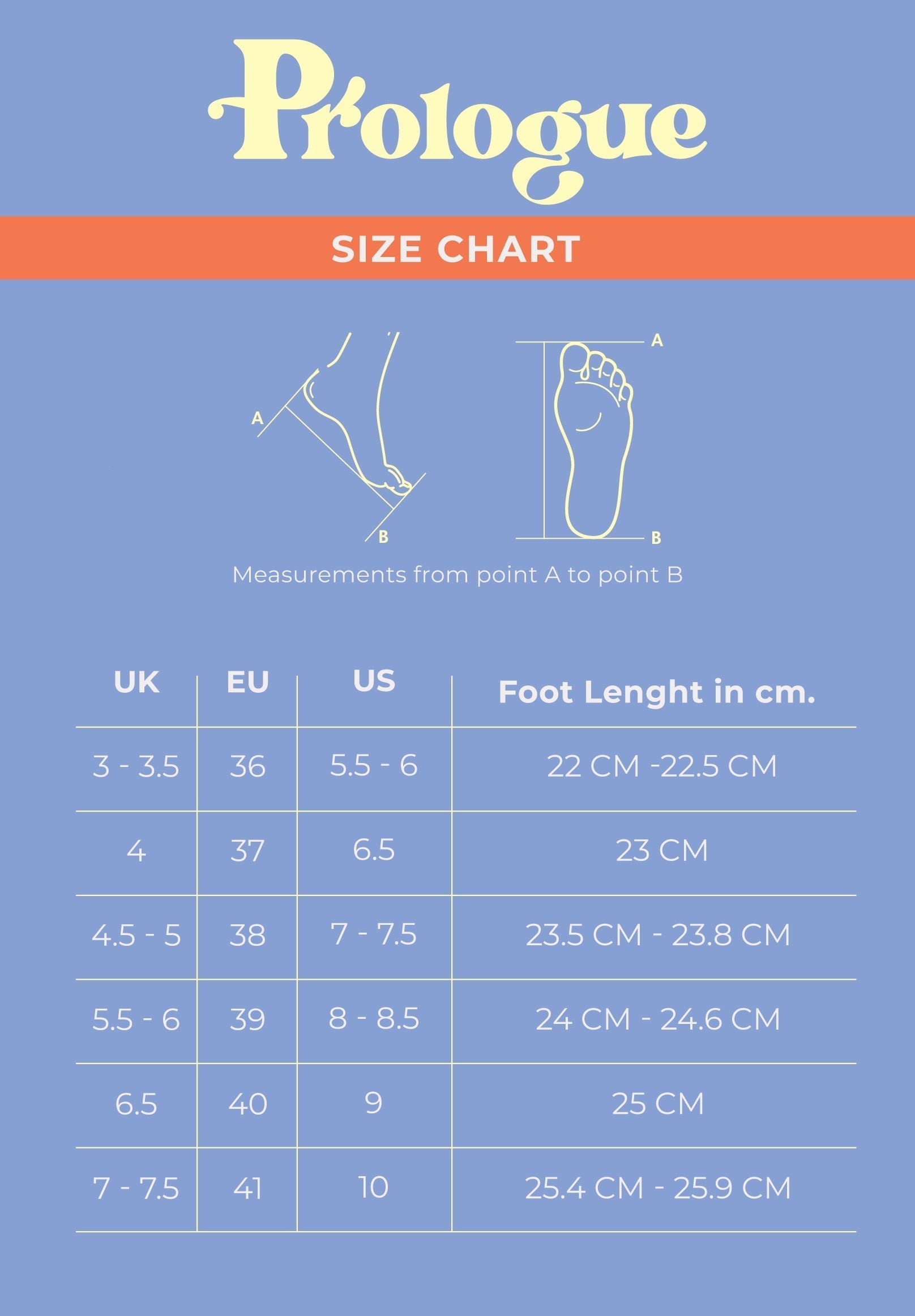 Please choose the larger size if your foot measurement falls between two sizes. It is usual for one of your feet to be longer than the other. If so, please select the larger size for your shoes.