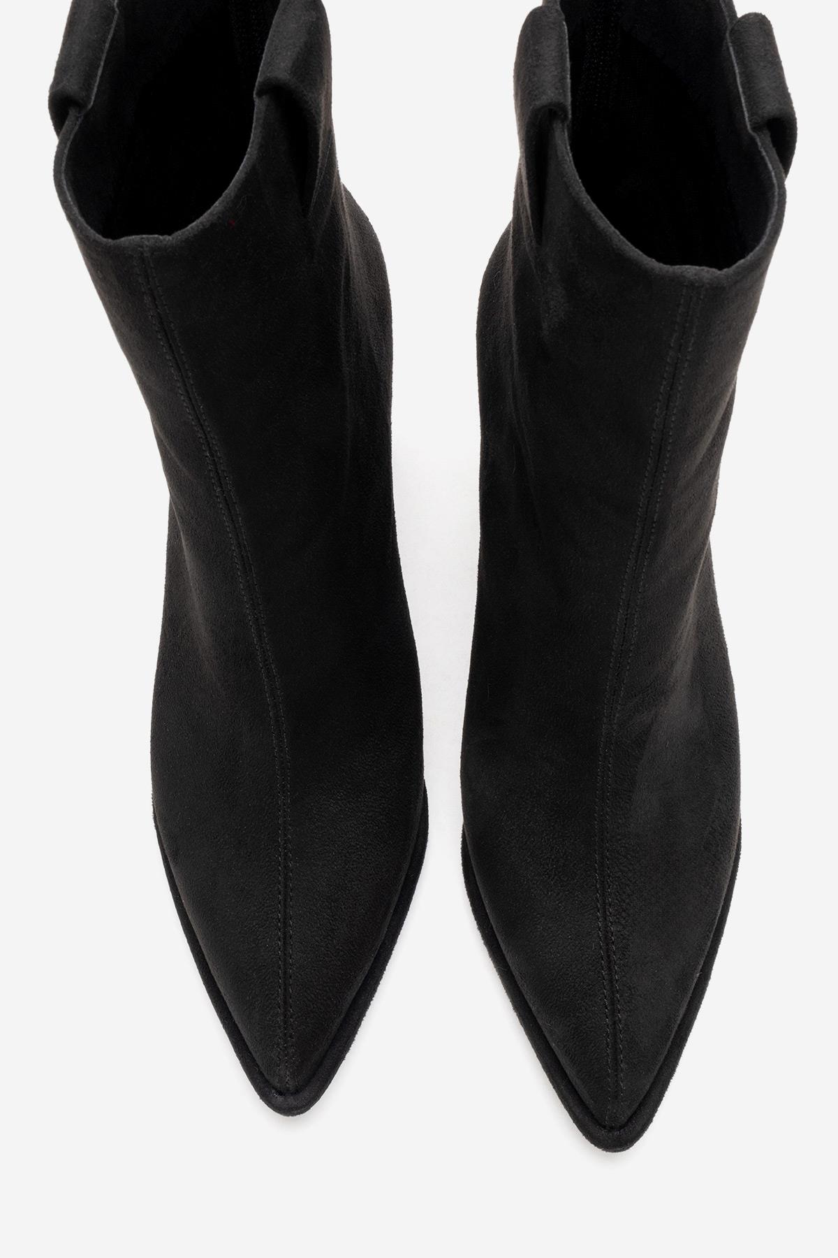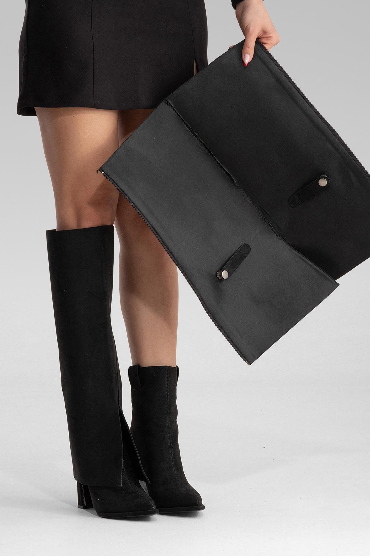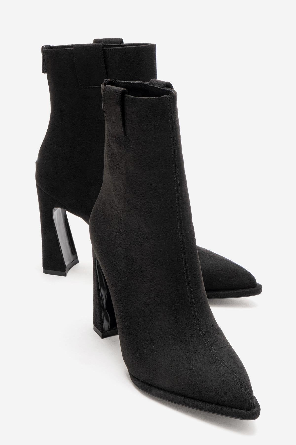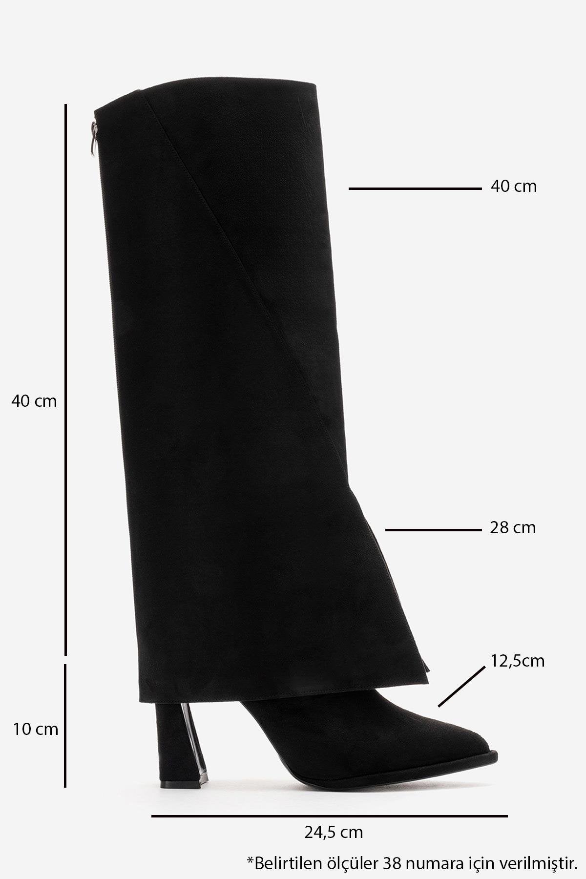 A sculpted block-heel boot that elongates the leg with a sleek paneled silhouette | 3.9" (10 cm) heel | 15.6" (40 cm) shaft | 10.9" (28 cm) ankle circumference | 15.6" (40 cm) calf circumference | 4.9" (12.5 cm) forefoot width | Synthetic suede upper / Warm lining / Neolite sole | Handmade in Turkey, true to size