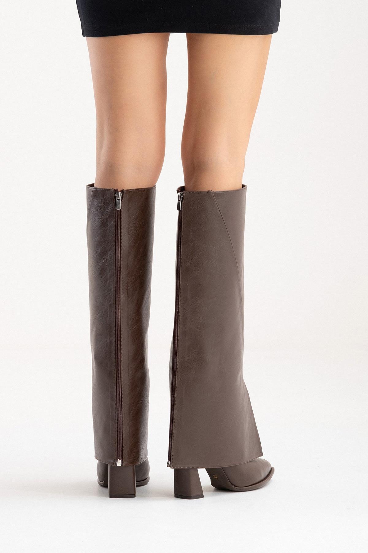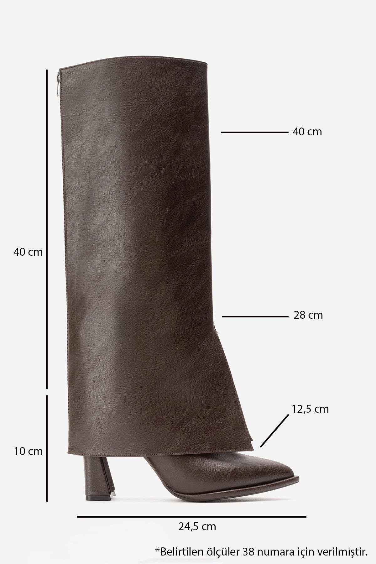 A sculptural long-cut boot that marries bold form with modern comfort | 3.9" (10 cm) heel | 15.6" (40 cm) shaft | 10.9" (28 cm) ankle circumference | 15.6" (40 cm) calf circumference | 4.9" (12.5 cm) forefoot width | Synthetic leather upper / Warm lining / Neolite sole | Handmade in Turkey, true to size