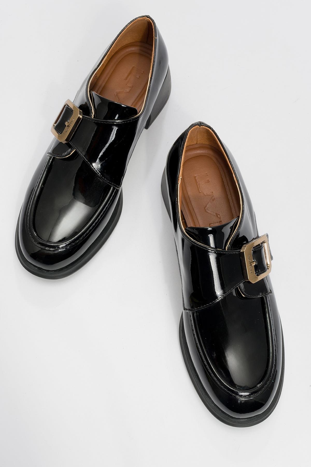 A modern patent loafer that balances polished shine with functional comfort | 1.6" (4 cm) heel | 2.5" (6.5 cm) shaft | 5.5" (14 cm) forefoot width | Synthetic leather upper / synthetic leather lining / TPU sole | Handmade in Turkey, true to size