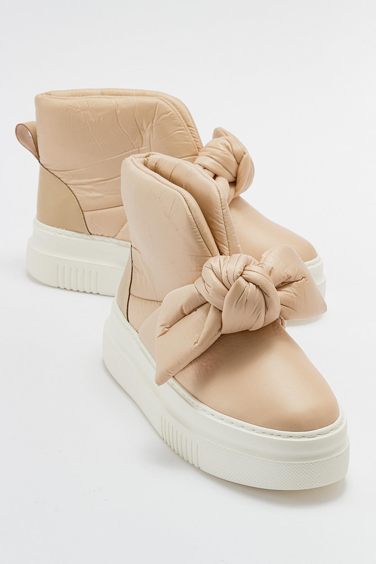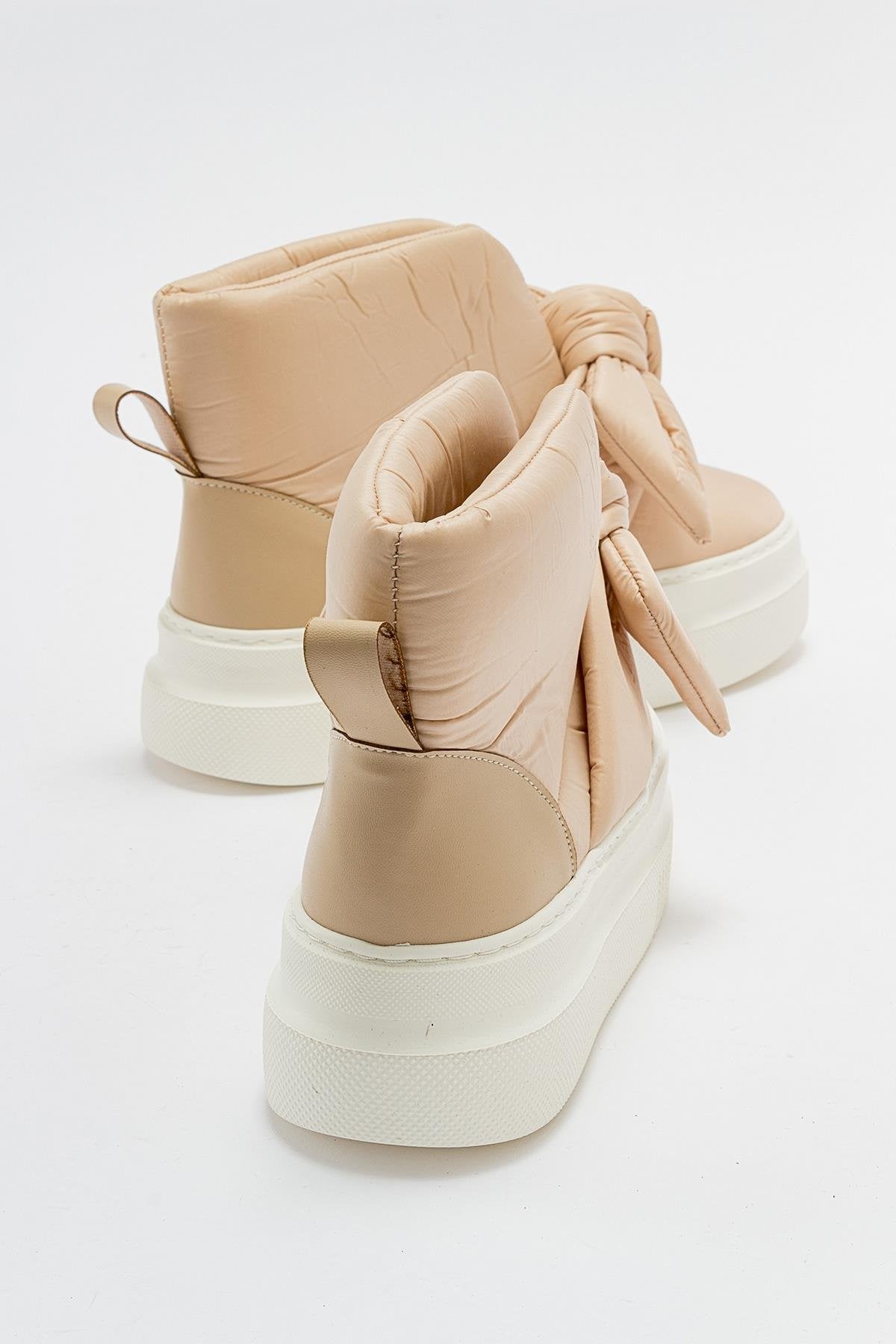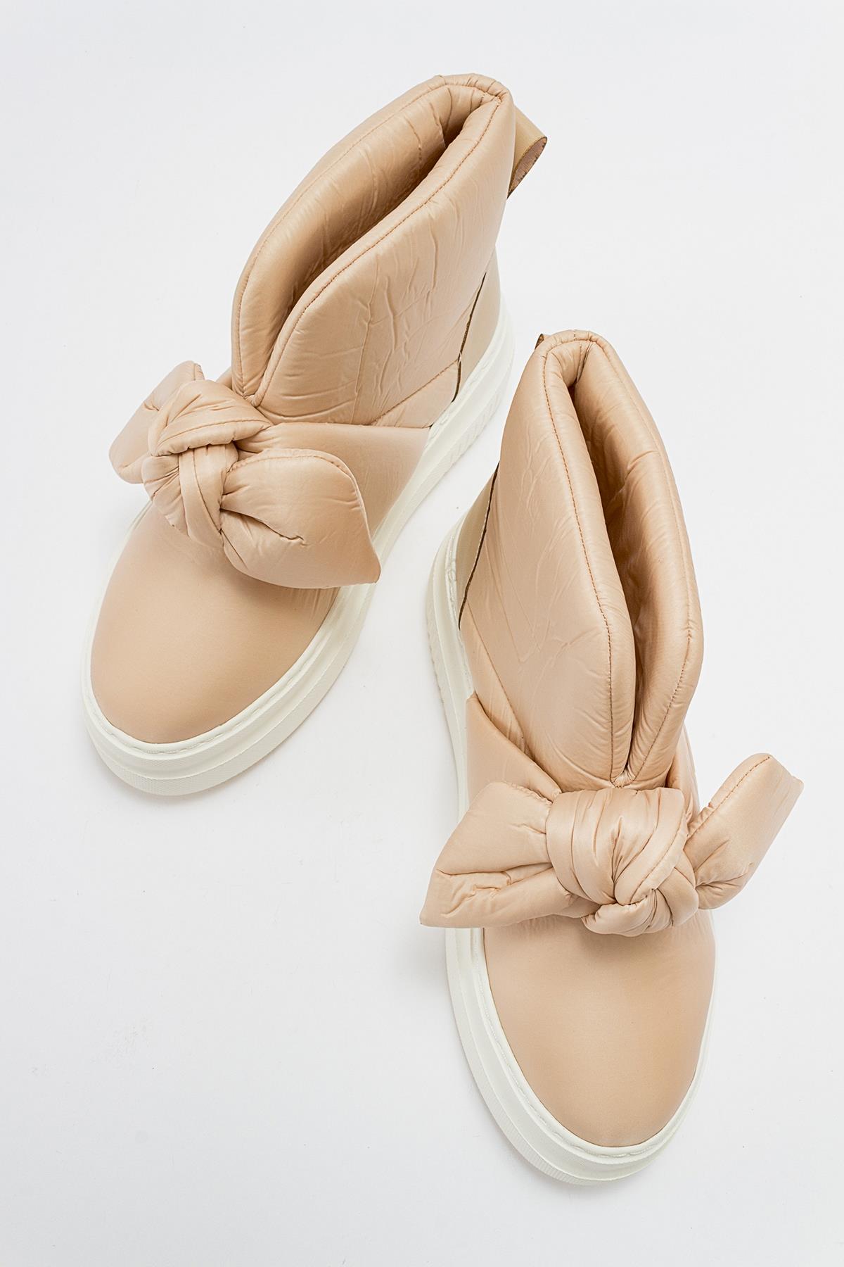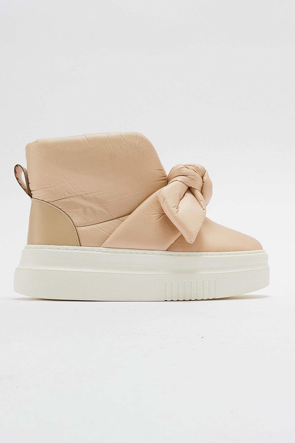 A sporty ankle boot accented with a feminine bow for a playful, modern look | 2.0" (5 cm) heel | 4.3" (11 cm) shaft | 13.3" (34 cm) ankle circumference | textile and synthetic leather upper / textile and synthetic leather lining / polyurethane sole | Handmade in Turkey, true to size