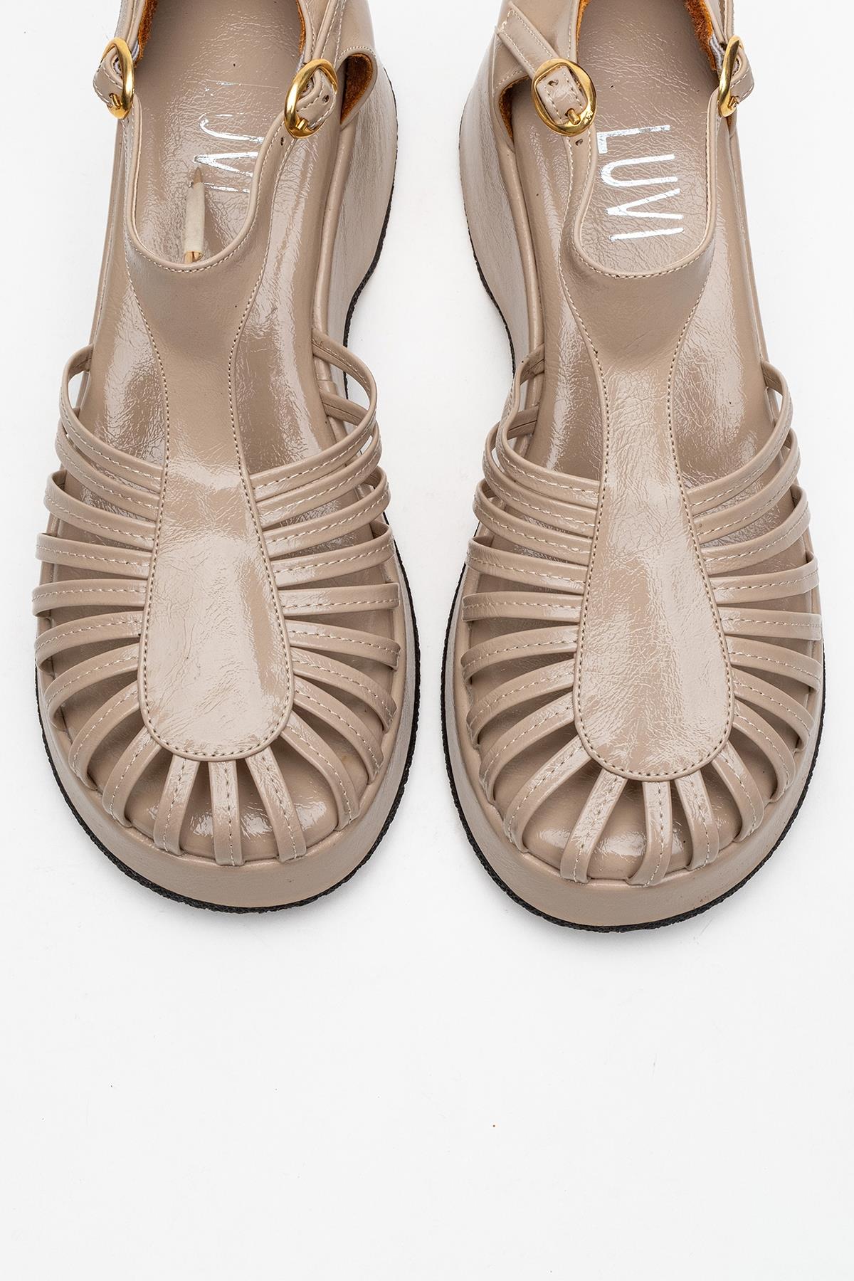 Aniel Platform Sandals from Prologue Shoes by Forever & Always Shoes offer a striking silhouette fused with elevated comfort. Crafted from high‑quality faux leather, these sandals feature a square toe and wide crossover straps for secure, structured wear. The stable mid-height dolgu‑taban measures approximately 6 cm (about 2.36 inches), providing confident height without compromising ease of movement. Thoughtfully designed with an adjustable buckle, the Aniel Sandals allow for a customizable fit, while the durable sole ensures reliable traction throughout daily activities. Handmade in Turkey with precision craftsmanship, they run true to size and offer a flattering, consistent fit. With their versatile and polished compact platform design, the Aniel Sandals effortlessly transition from casual daywear to more refined looks, making them a sophisticated staple in any modern wardrobe.