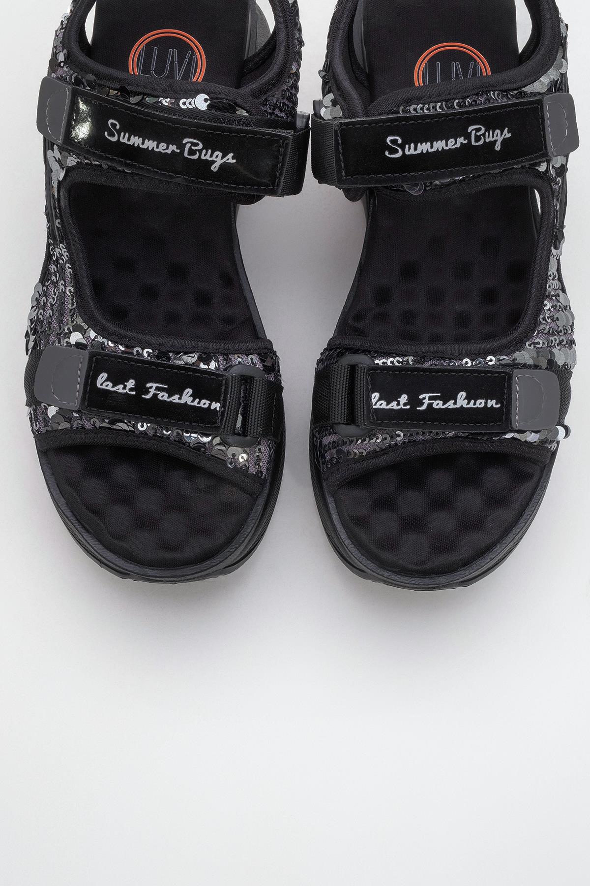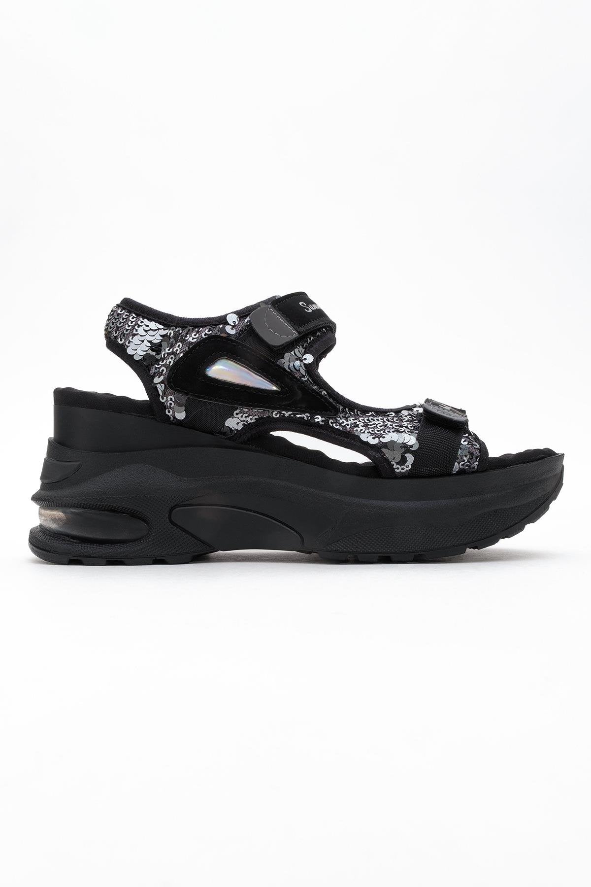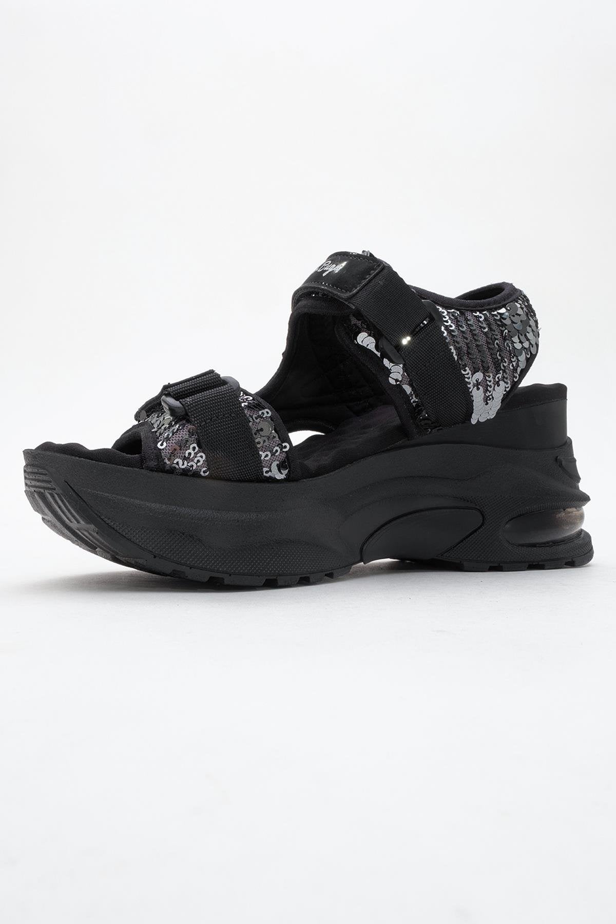 A modern sport sandal sparkling with sequined straps for statement-making comfort