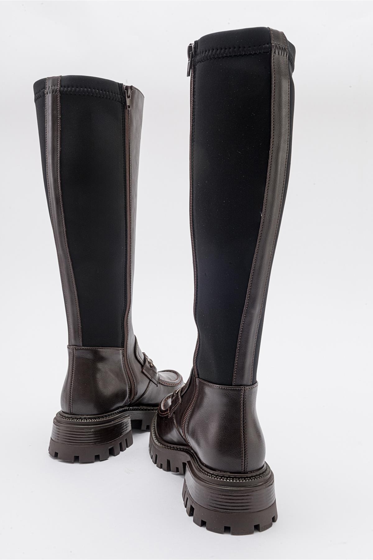 A versatile stretch boot that blends sleek tailoring with functional comfort. | 2.0" (5 cm) heel | 15.6" (40 cm) shaft | 10.5" (27 cm) ankle circumference | 13.6" (35 cm) calf circumference | Synthetic leather/scuba fabric upper / Warm lining / Polyurethane sole | Handmade in Turkey, true to size
