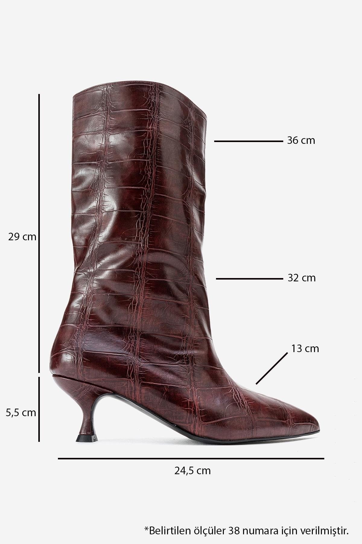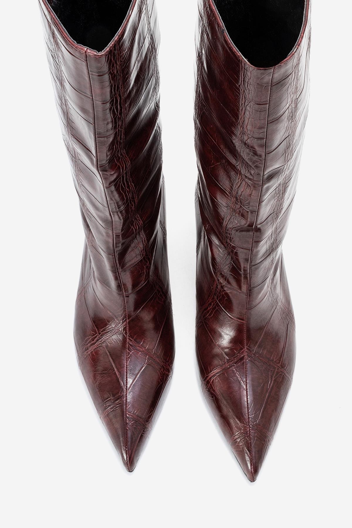 A striking ankle boot that fuses refined structure with bold texture | 2.1" (5.5 cm) heel | 11.3" (29 cm) shaft | 12.5" (32 cm) ankle circumference | 14.0" (36 cm) calf circumference | 5.1" (13 cm) forefoot width | synthetic leather upper / warm lining / TPU sole | Handmade in Turkey, true to size