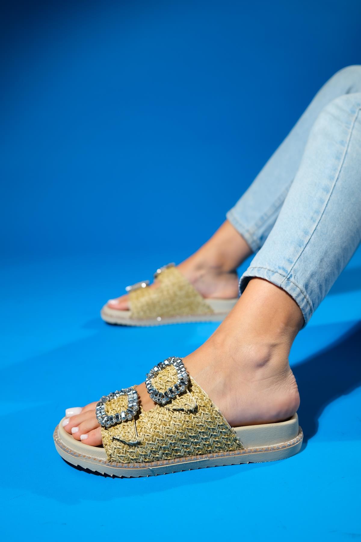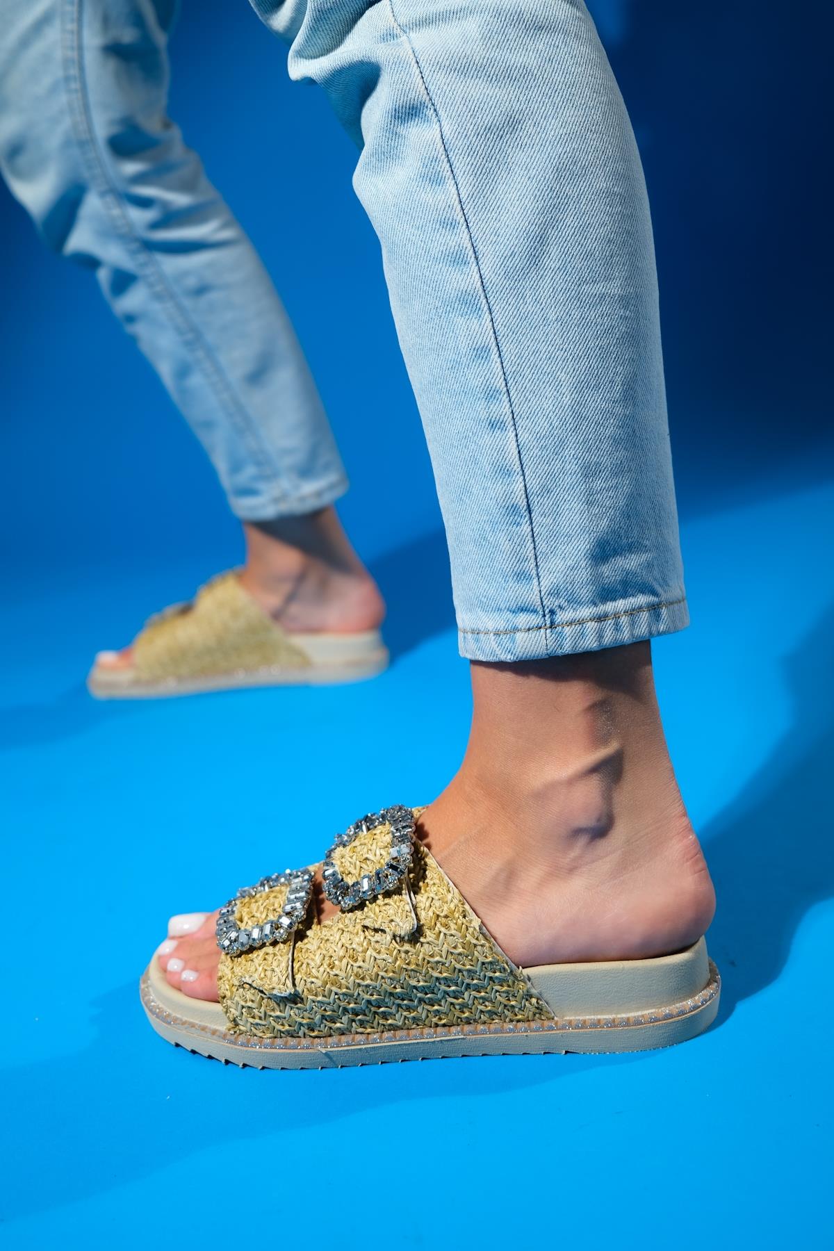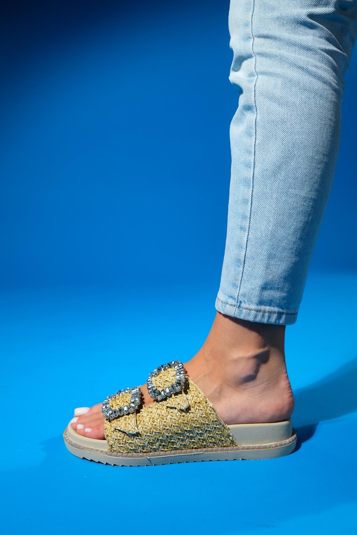A woven-detail slide sandal that balances handcrafted charm with casual ease | 1.2" (3 cm) heel | Synthetic leather upper / polyurethane sole | Handmade in Turkey, true to size