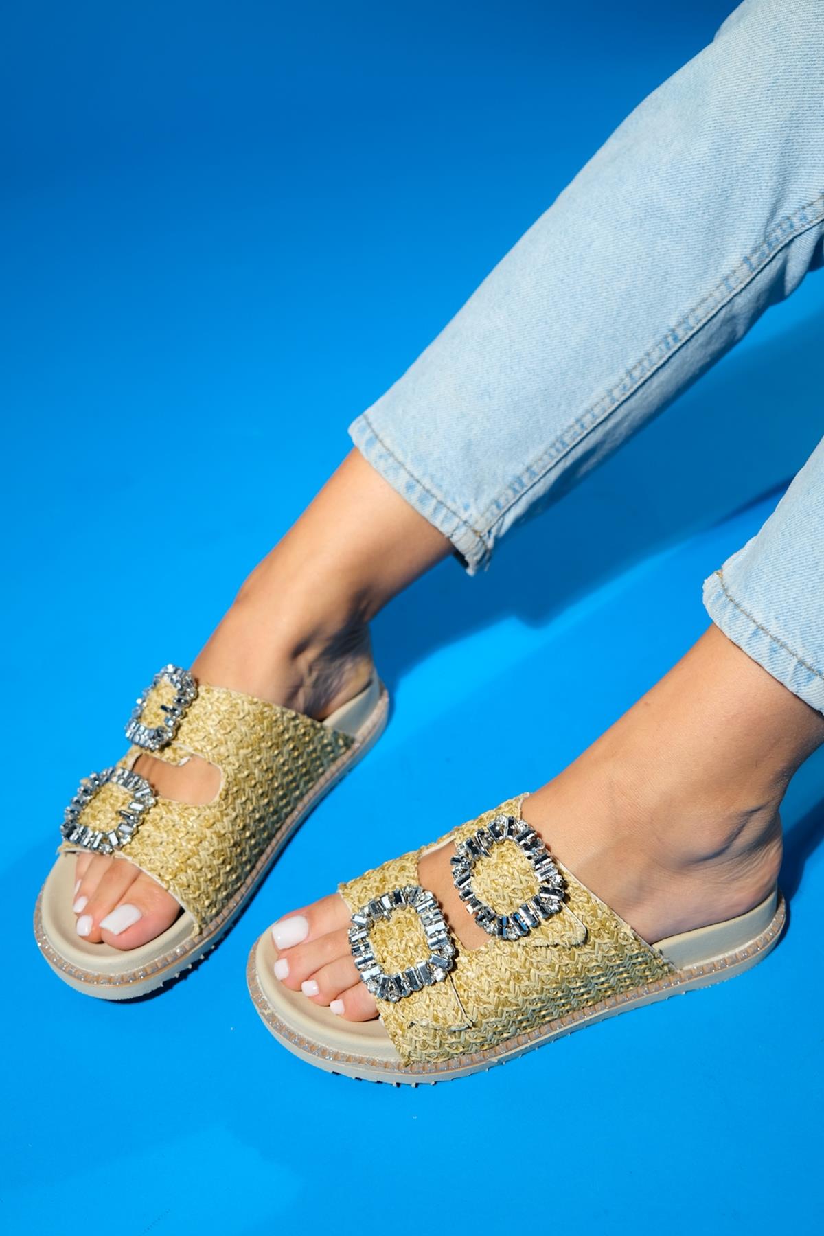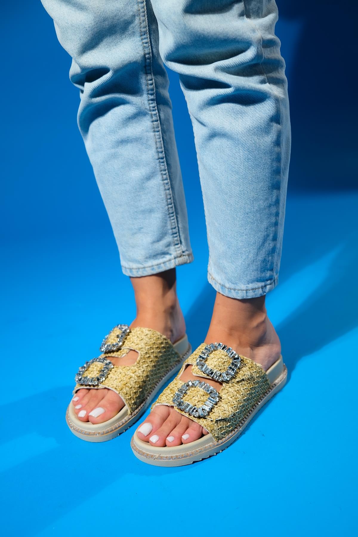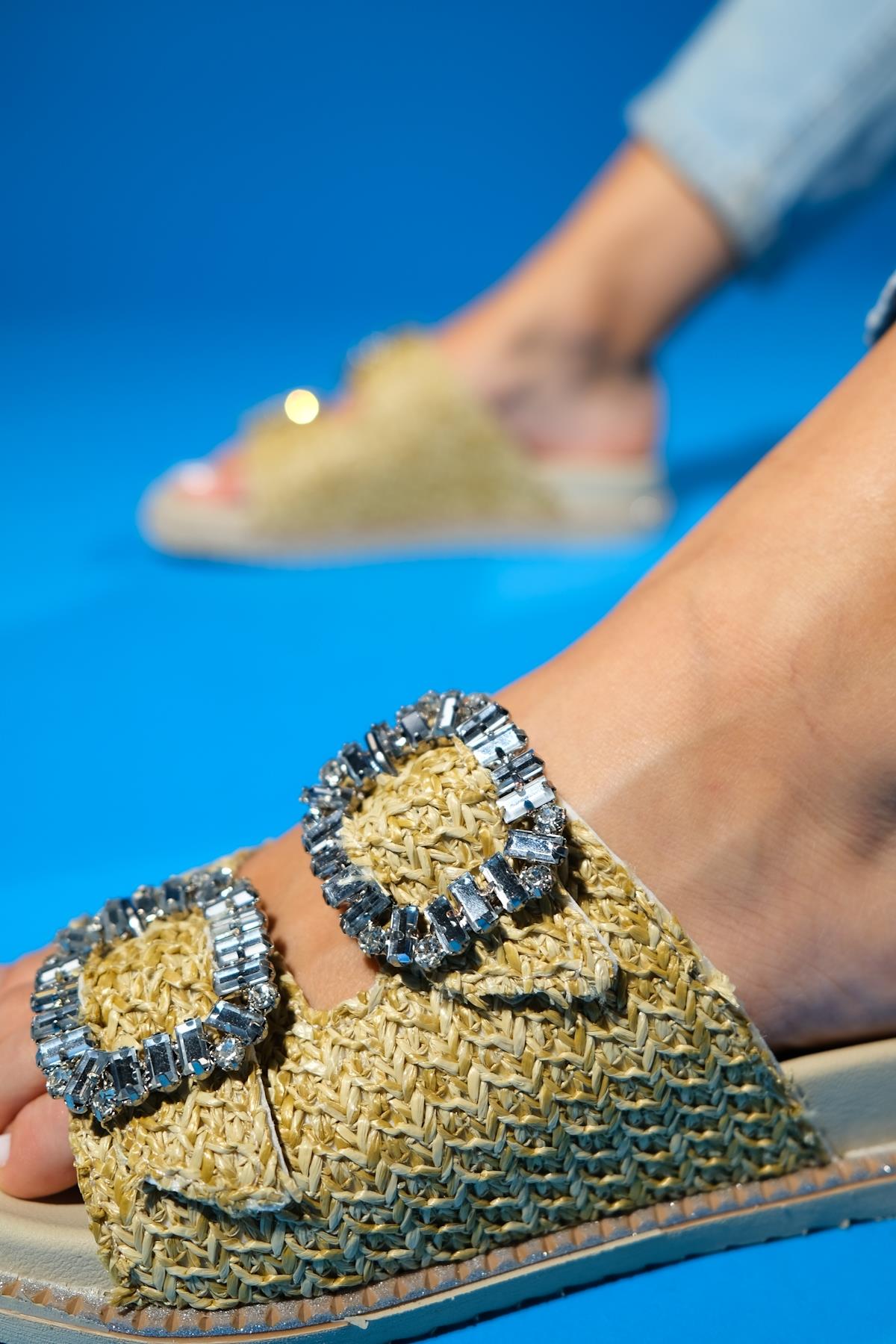 A woven-detail slide sandal that balances handcrafted charm with casual ease | 1.2" (3 cm) heel | Synthetic leather upper / polyurethane sole | Handmade in Turkey, true to size