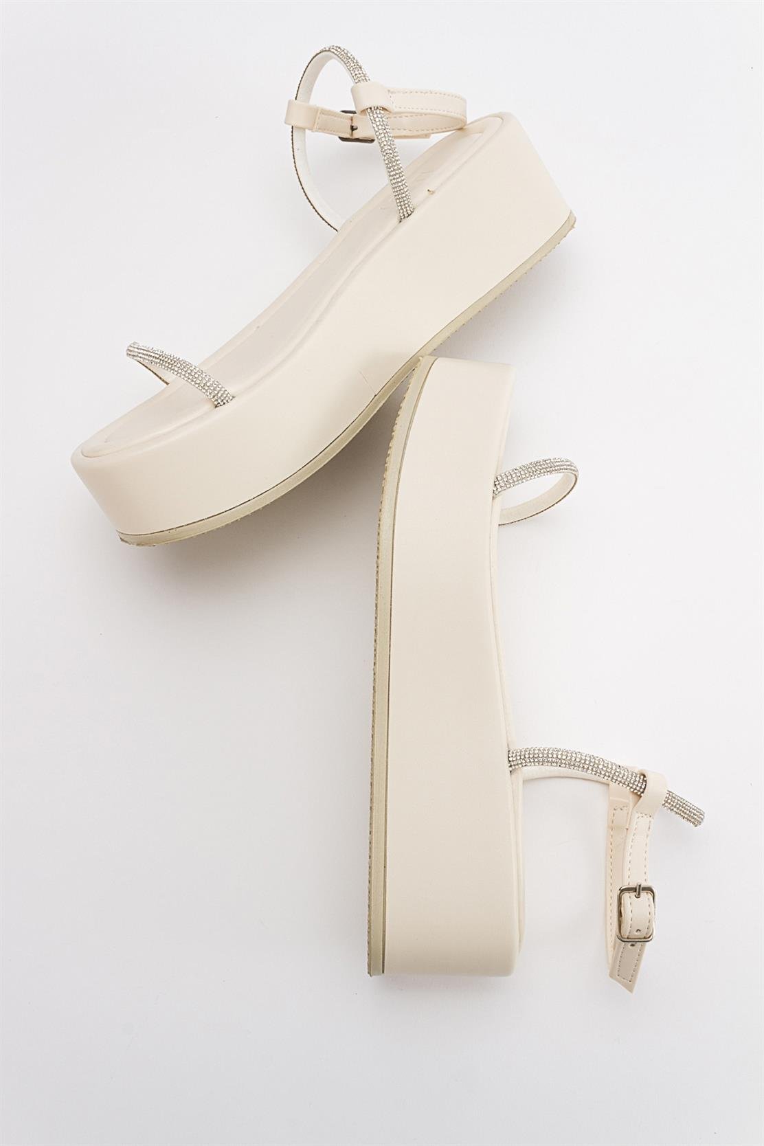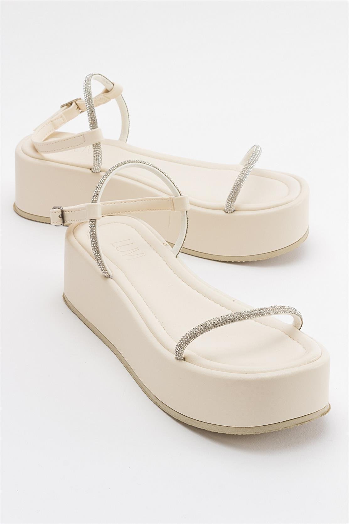 A jeweled platform sandal that adds refined sparkle to daytime and evening looks | 2.1" (5.5 cm) heel | Synthetic leather upper / synthetic leather lining / polyurethane sole | Handmade in Turkey, true to size
