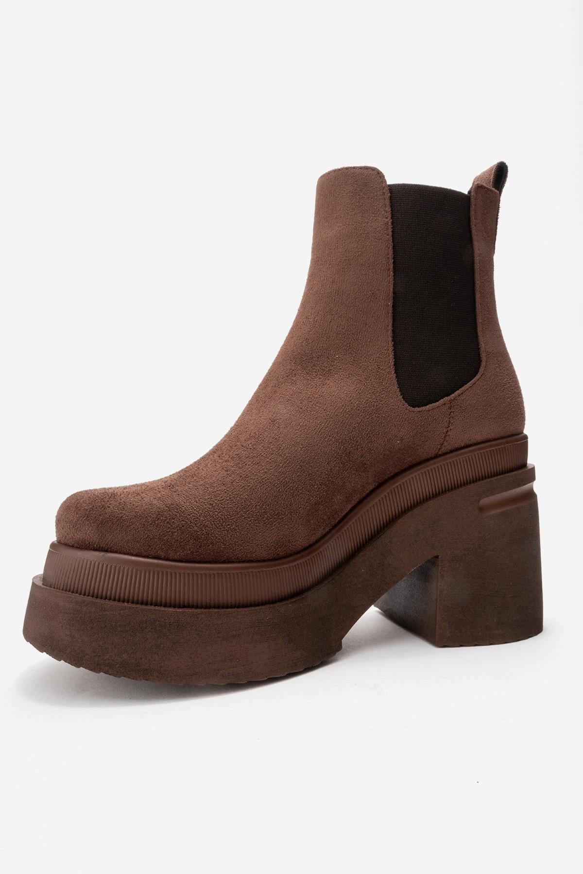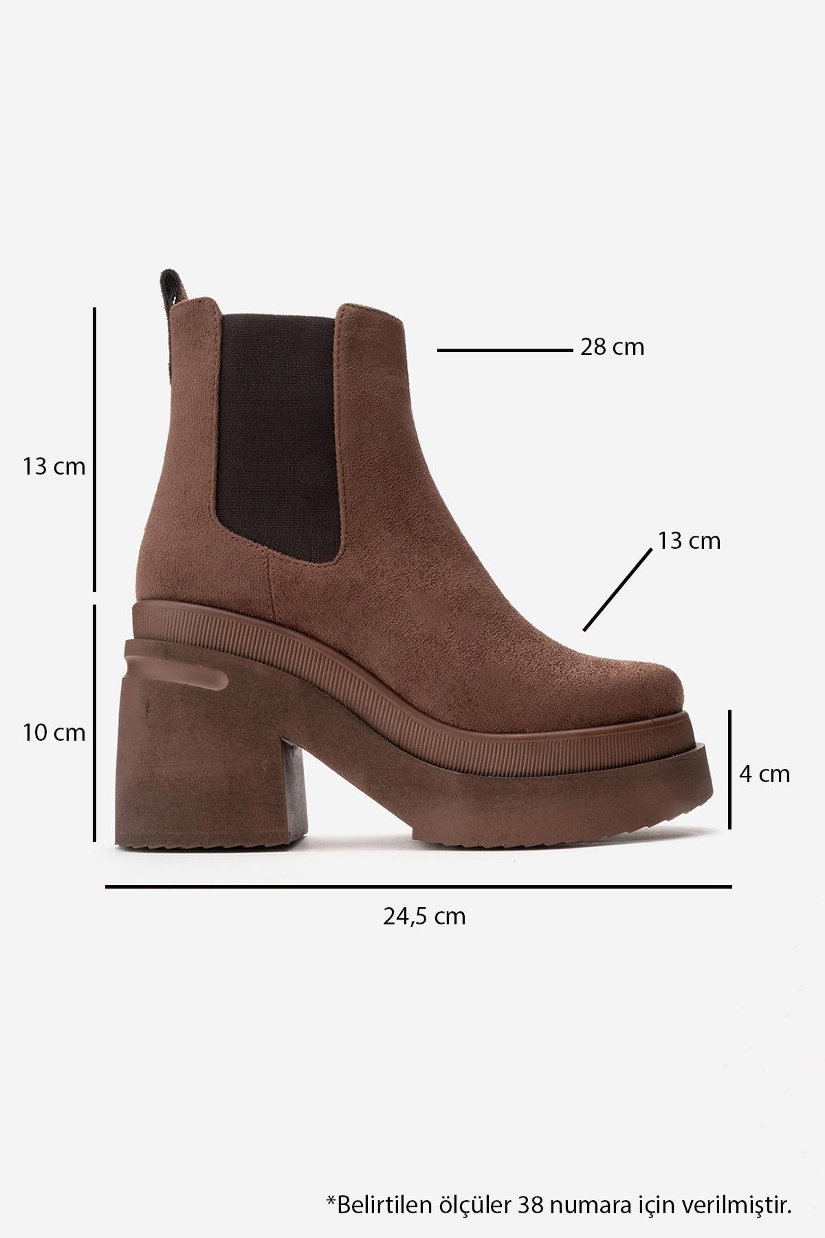 A flawless platform boot that combines the season's most on-trend silhouette with comfort | 3.9" (10 cm) heel with 1.6" (4 cm) front platform | 5.1" (13 cm) shaft | 10.9" (28 cm) ankle circumference | 5.1" (13 cm) forefoot width | Synthetic suede upper / Warm lining / EVA sole | Handmade in Turkey, true to size