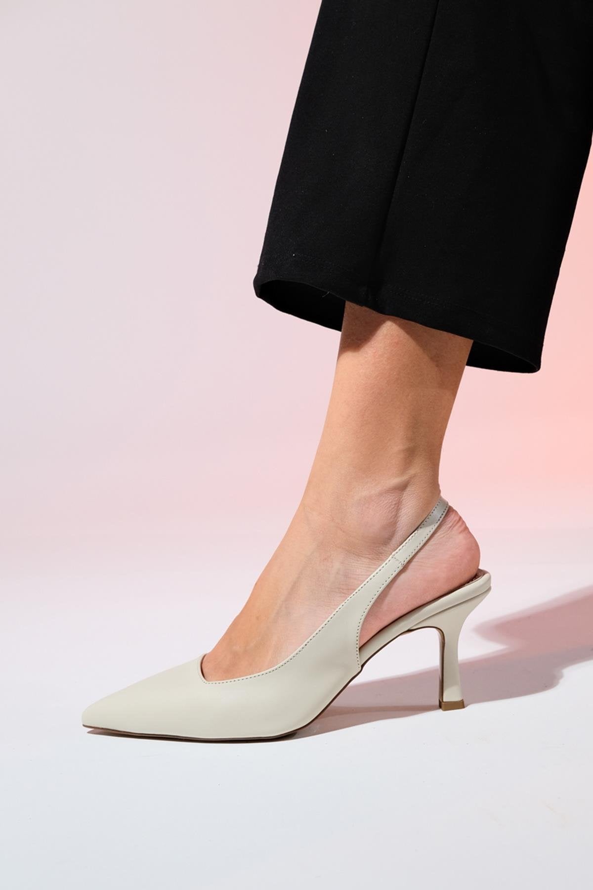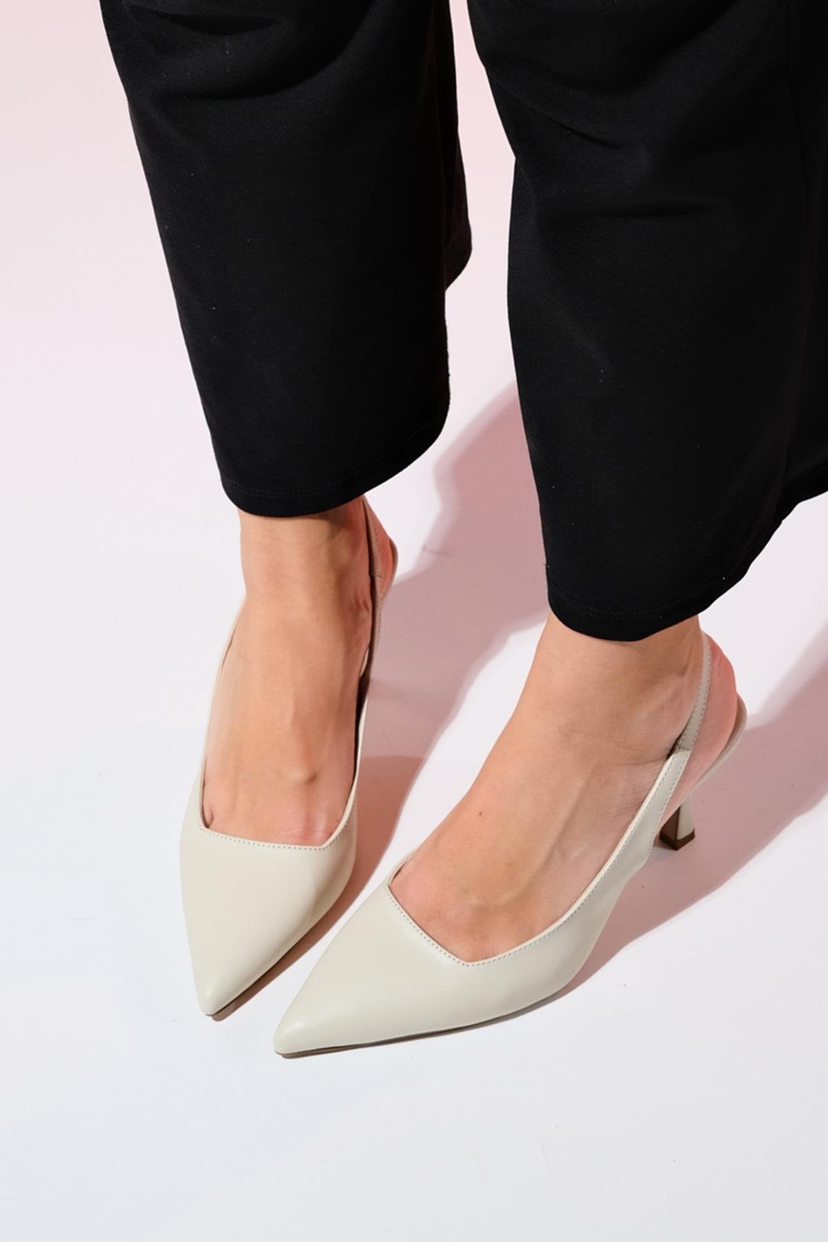 Flem - Ecru Pointed Toe Backless Stiletto Pump (Women)