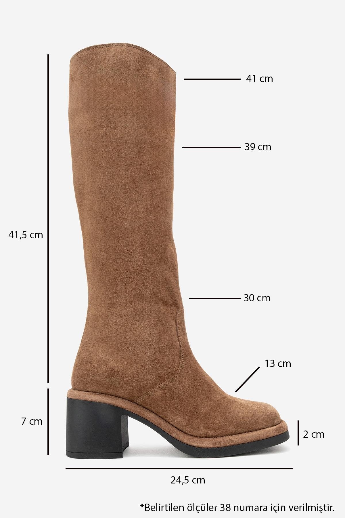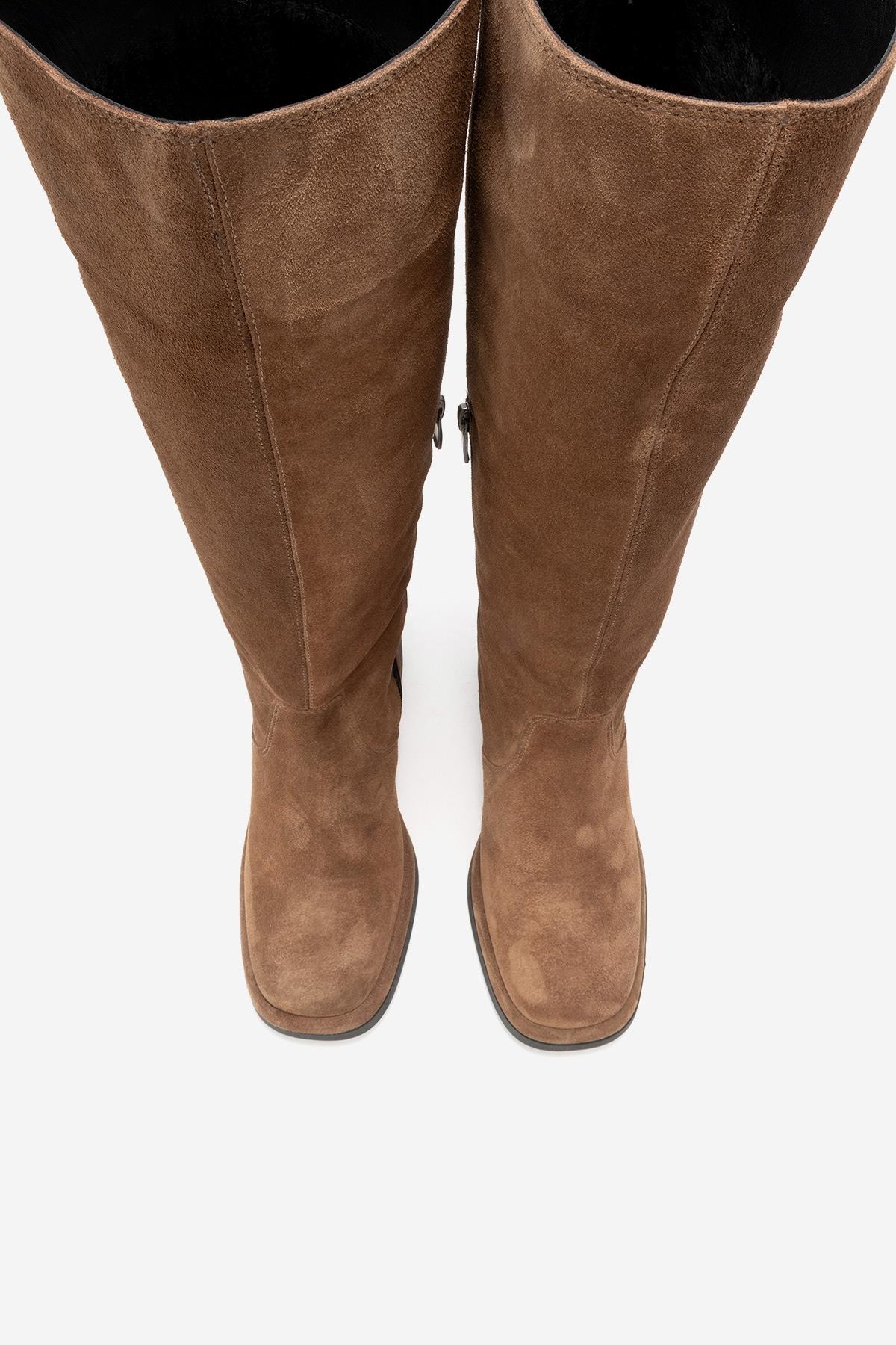 A soft-suede knee-high boot that blends elegant lines with luxurious texture and modern comfort | 2.7" (7 cm) heel (0.8" (2 cm) platform) | 16.2" (41.5 cm) shaft | 11.7" (30 cm) ankle circumference | 15.2" (39 cm) calf circumference | 5.1" (13 cm) forefoot width | Genuine leather upper / warm lining / rubber sole | Handmade in Turkey, true to size
