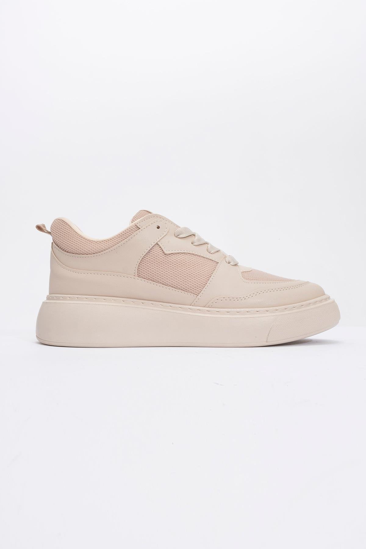 The Ingrid Beige Platform Sneakers from Forever & Always Shoes are a perfect combination of style and comfort, designed for modern women who appreciate versatility in their wardrobe. These sneakers feature a neutral beige upper crafted from a blend of sleek synthetic leather and breathable mesh, giving them a clean, contemporary look. The minimalist design ensures they pair effortlessly with casual or semi-formal outfits. The platform outsole, measuring 4 cm (1.57 inches), provides just the right amount of elevation, adding a subtle boost to your height without compromising on comfort. With a soft, cushioned lining and sturdy construction, these sneakers are ideal for all-day wear. Whether you're running errands, meeting friends, or traveling, the Ingrid sneakers deliver a polished yet relaxed aesthetic that’s always in style.