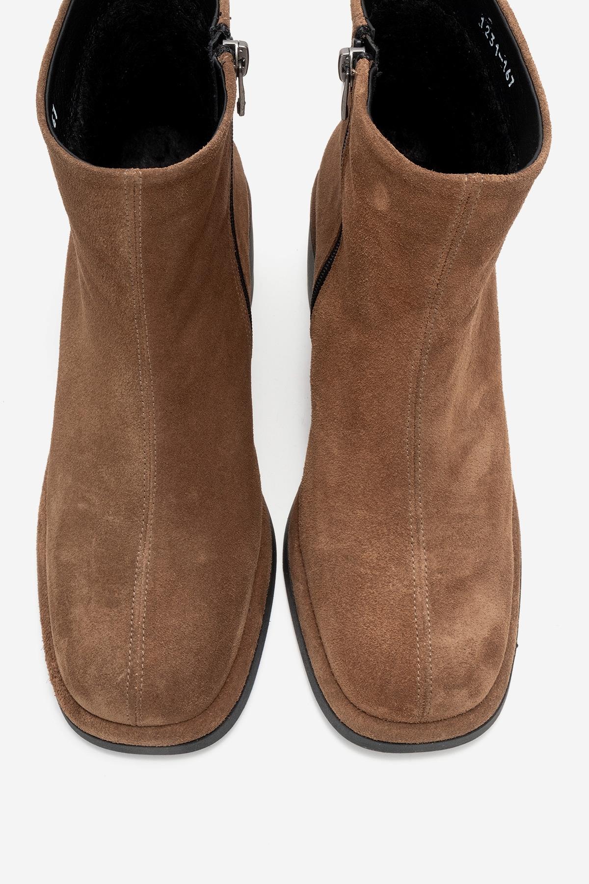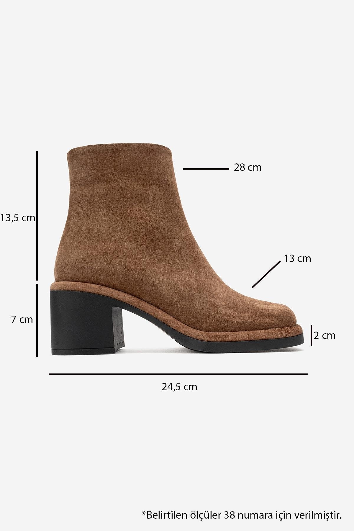 An elegant block-heeled boot offering understated sophistication and reliable comfort | 2.7" (7 cm) heel (0.8" (2 cm) front platform) | 5.3" (13.5 cm) shaft | 10.9" (28 cm) ankle circumference | 5.1" (13 cm) forefoot width | Genuine leather suede upper / warm lining / rubber sole | Handmade in Turkey, true to size