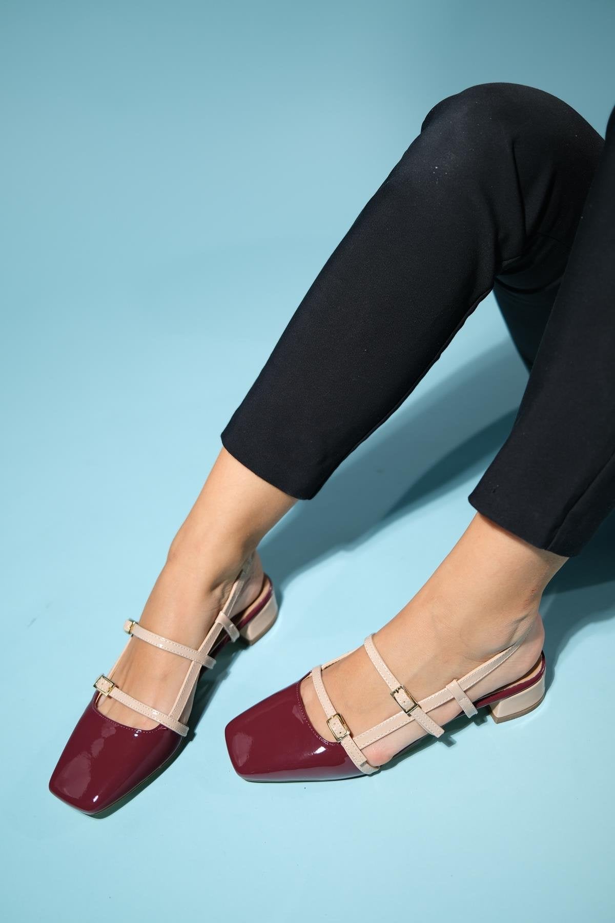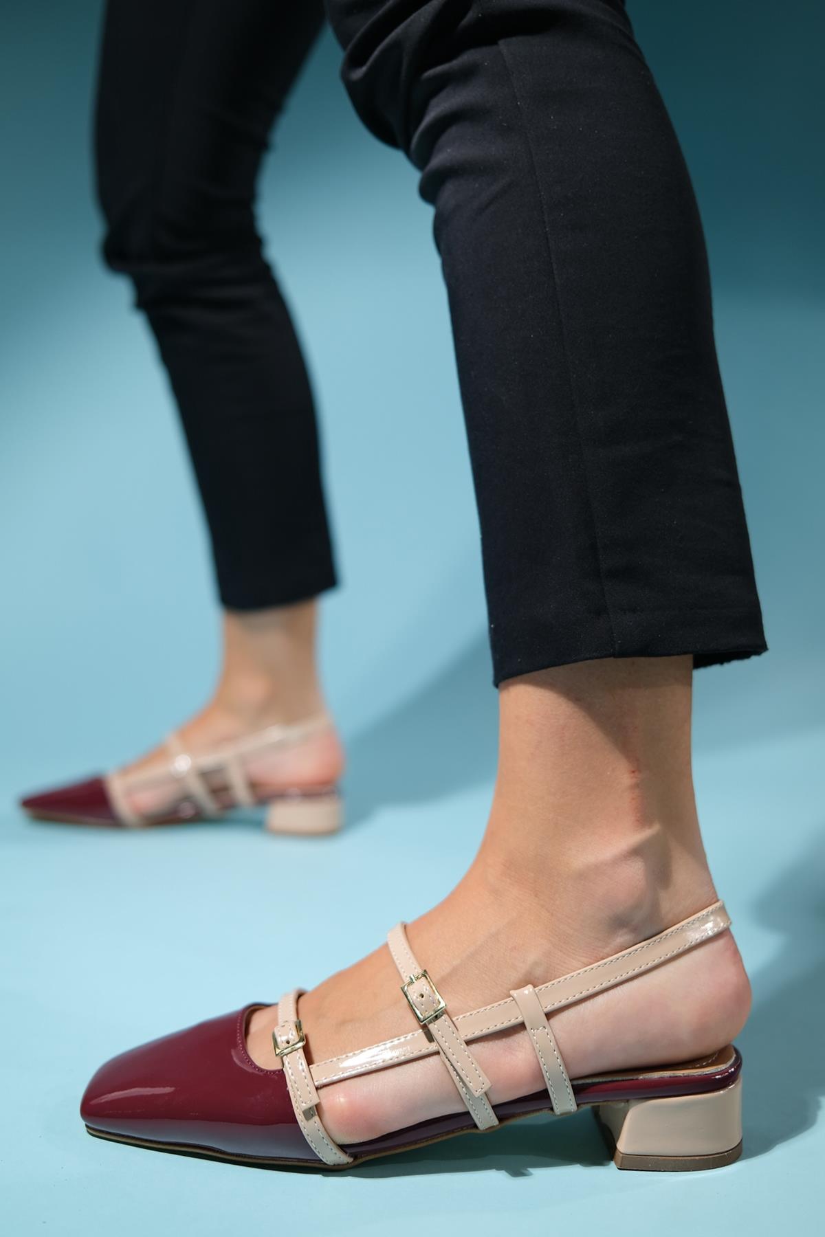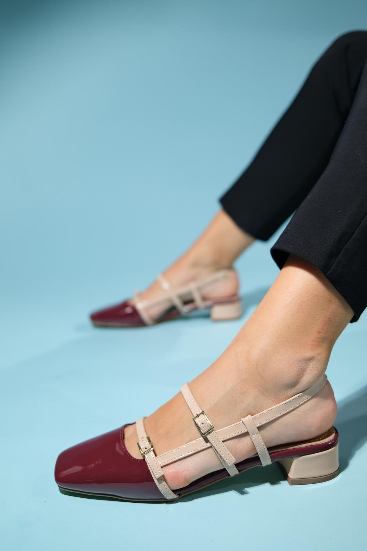 A chic patent heeled sandal combining bold tones with timeless appeal | 1.6" (4 cm) heel | Synthetic leather upper / neolite sole | Handmade in Turkey, true to size