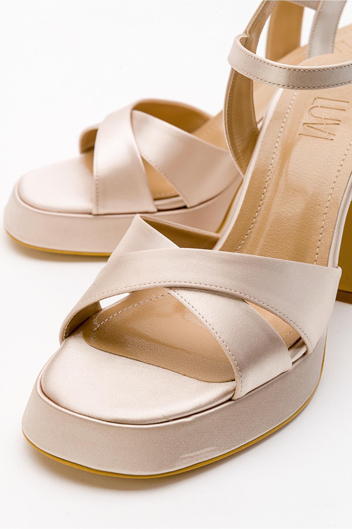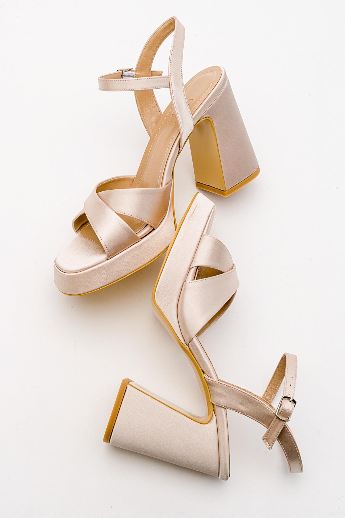 A sleek satin platform heel that elevates any evening look | 4.3" (11 cm) heel (1.2" (3 cm) platform) | Textile upper / synthetic leather lining / neolite sole | Handmade in Turkey, true to size