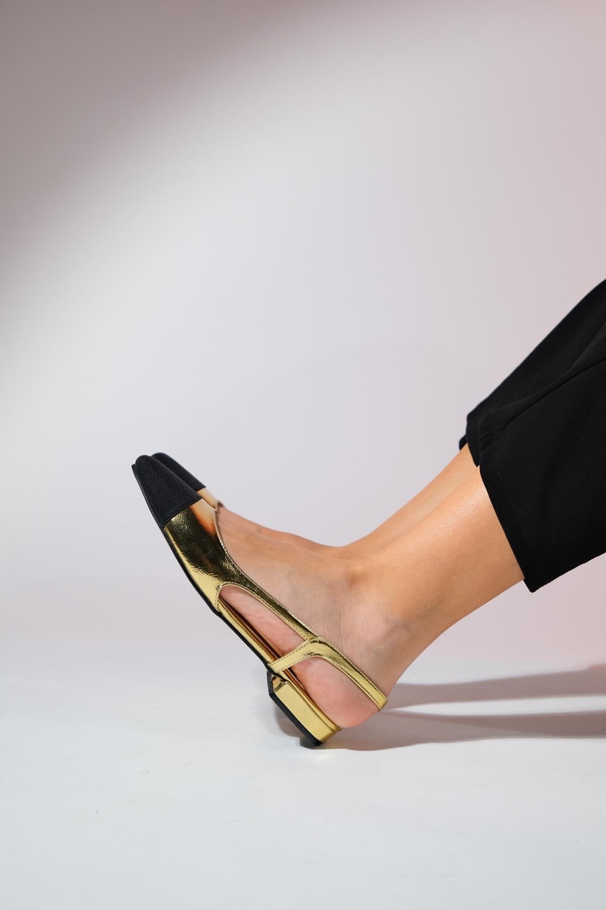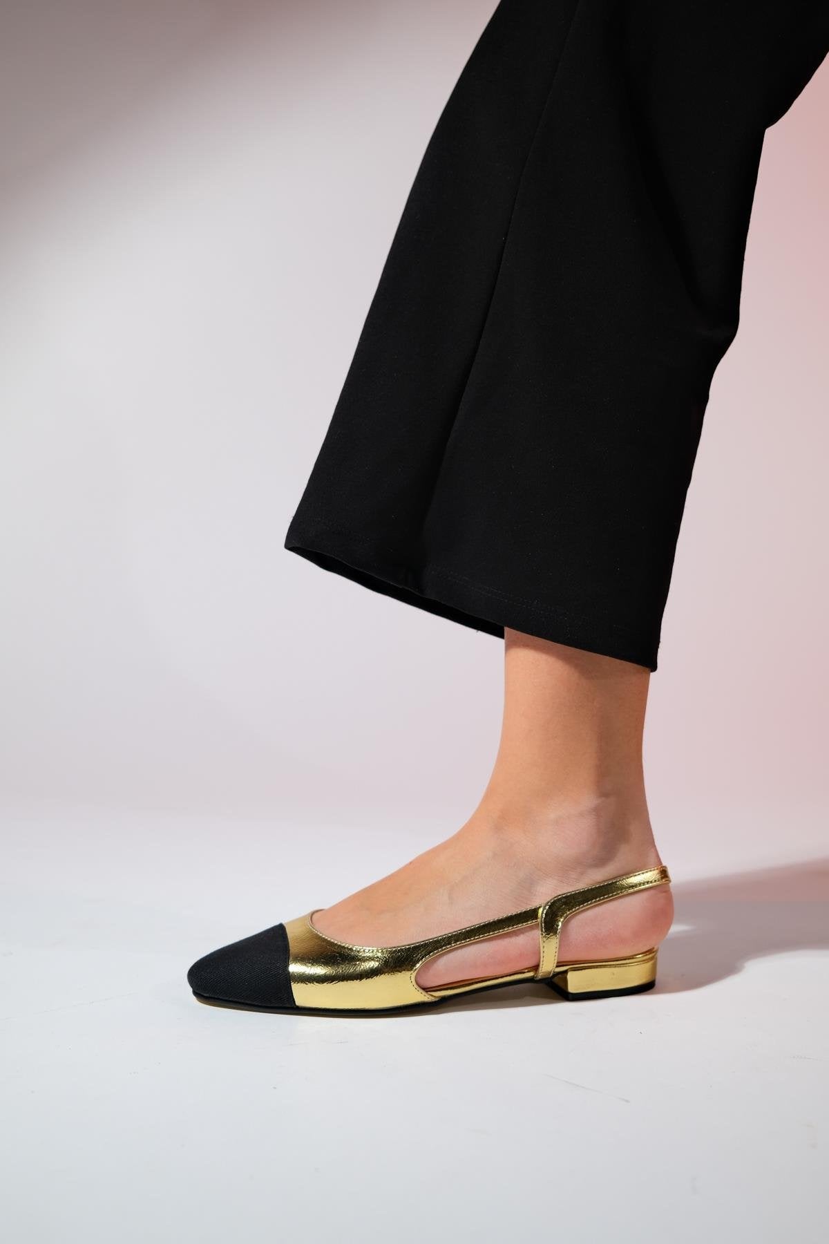 A subtly glamorous backless flat that adds a touch of shine to both casual and dress looks