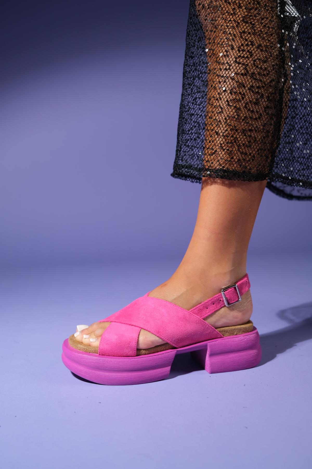 A striking cross-strap sandal designed to blend contemporary flair with all-day comfort