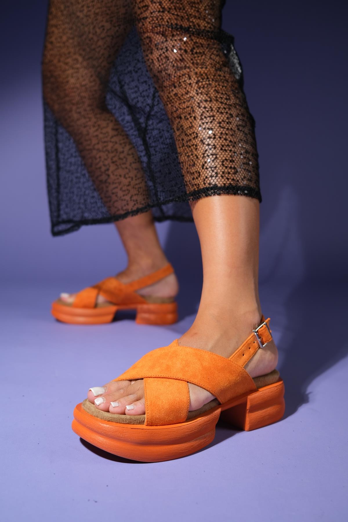 A vibrant cross-strap sandal that pairs bold design with wearable support for everyday styling | 2.3" (6 cm) heel | Synthetic leather upper / polyurethane sole | Handmade in Turkey, true to size