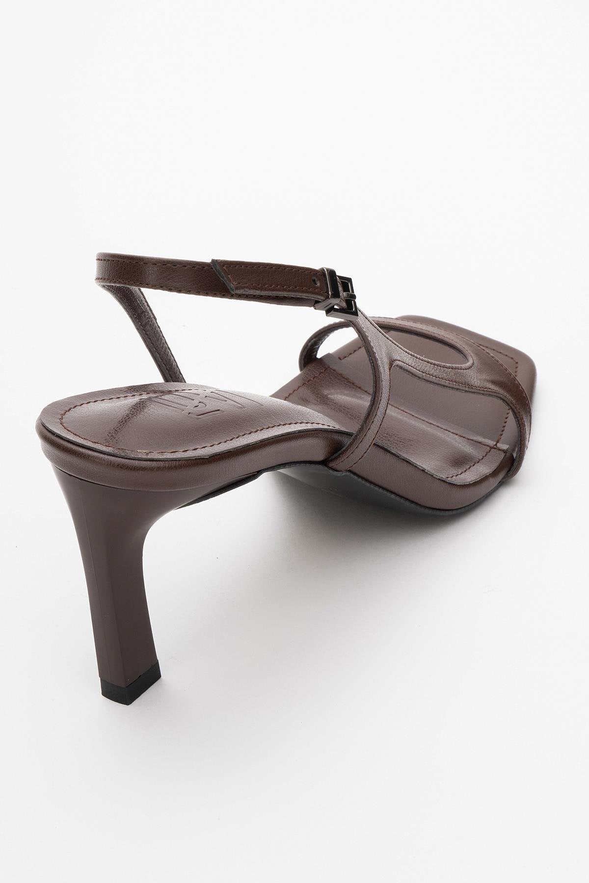 An elegant heeled sandal with minimalist straps and a refined square toe