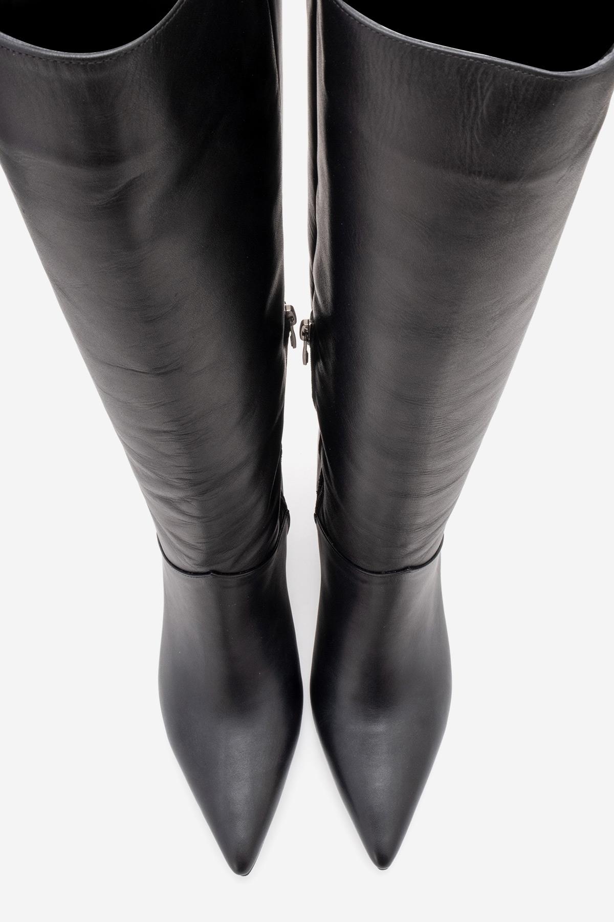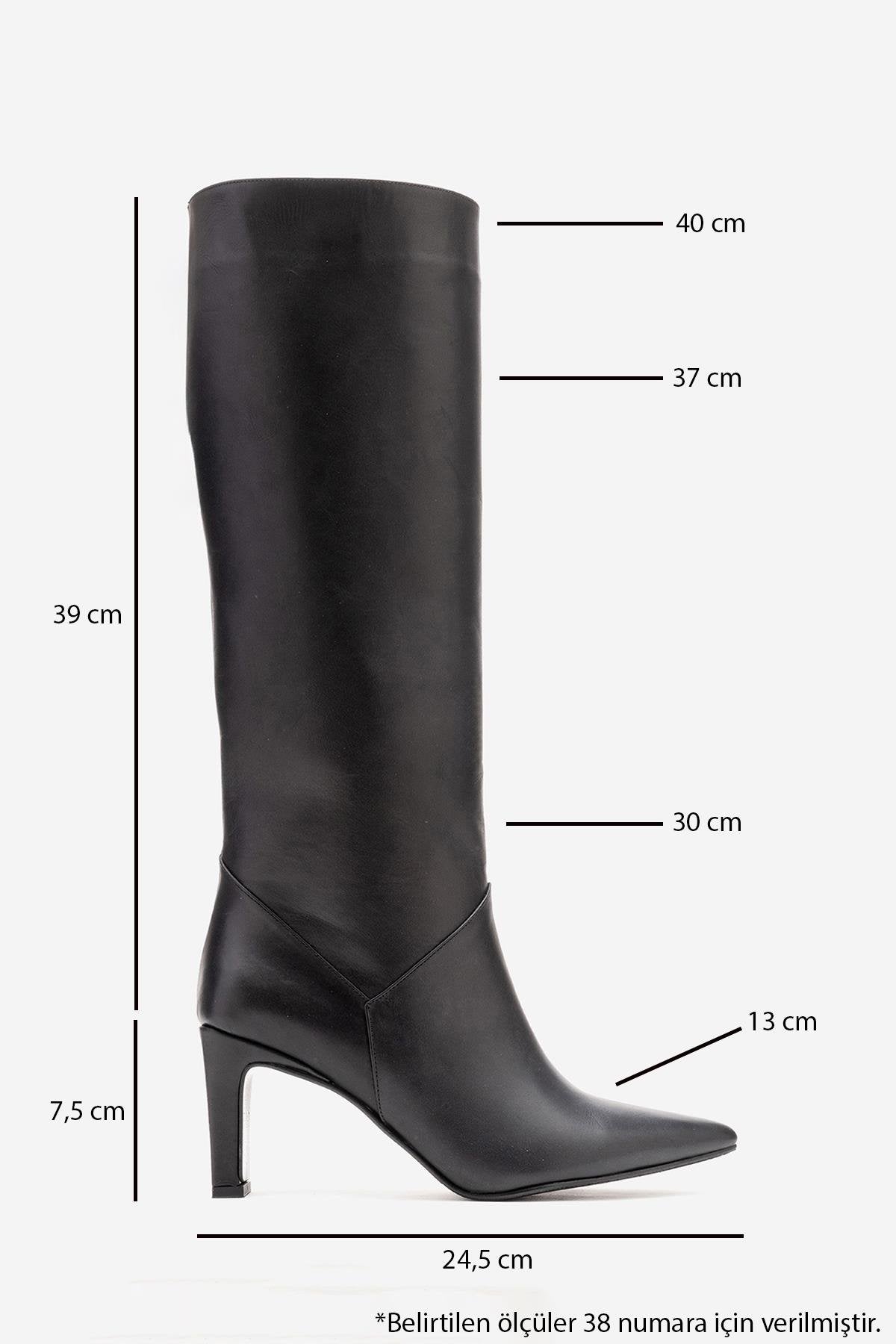 A refined boot that pairs classic leather craftsmanship with a sharp, city-ready silhouette | 2.9" (7.5 cm) heel | 15.2" (39 cm) shaft | 11.7" (30 cm) ankle circumference | 14.4" (37 cm) calf circumference | 5.1" (13 cm) forefoot width | Genuine leather upper / Warm lining / Neolite sole | Handmade in Turkey, true to size