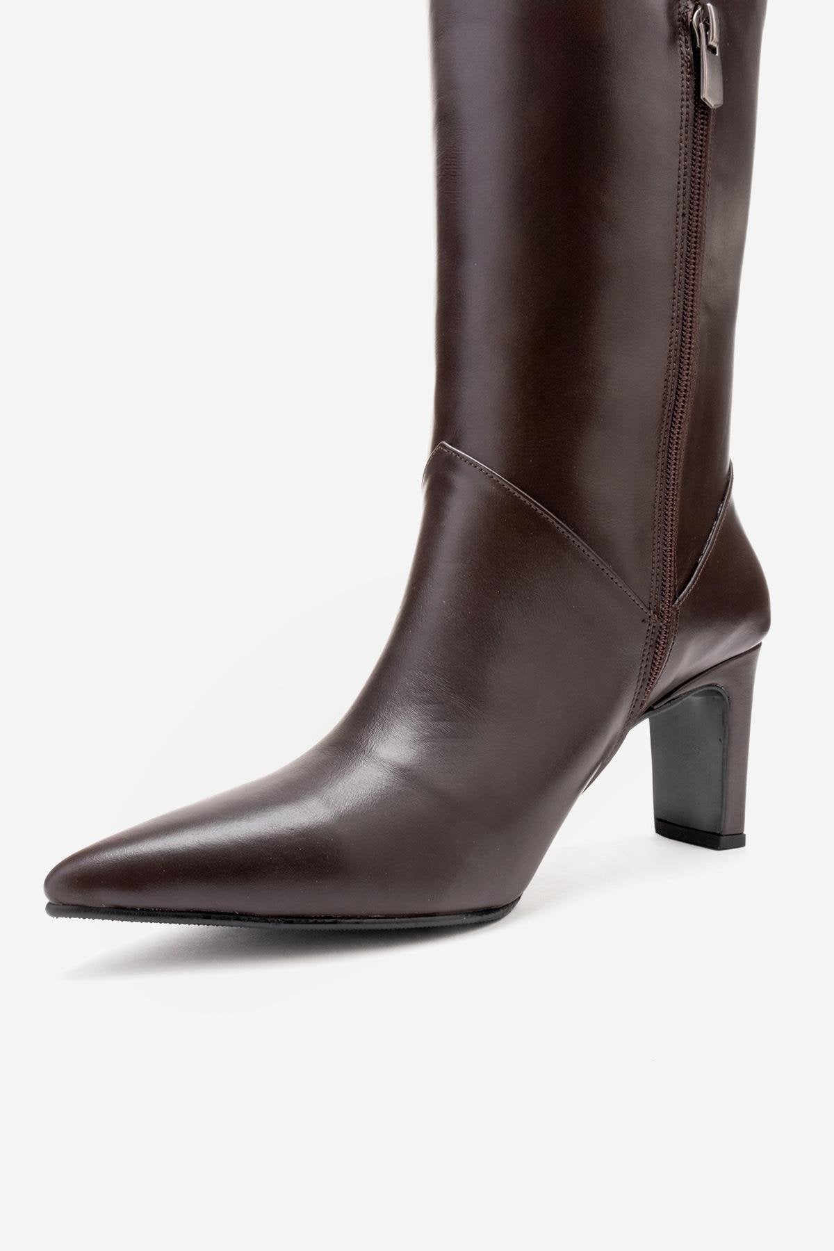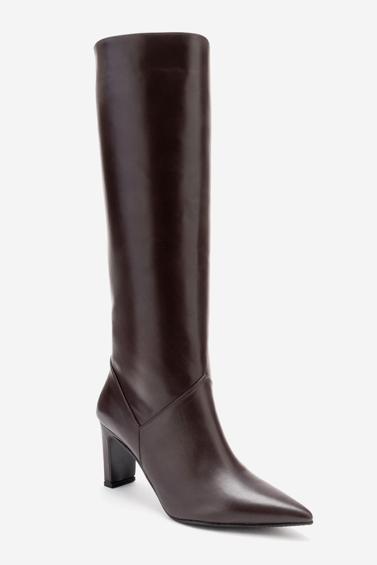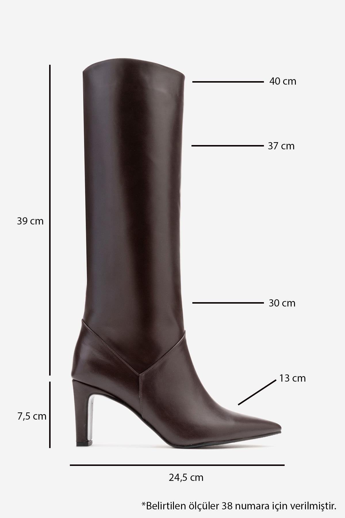 A timeless boot that combines smooth genuine leather with a streamlined, modern profile | 2.9" (7.5 cm) heel | 15.2" (39 cm) shaft | 11.7" (30 cm) ankle circumference | 14.4" (37 cm) calf circumference | 5.1" (13 cm) forefoot width | Genuine leather upper / Warm lining / Neolite sole | Handmade in Turkey, true to size