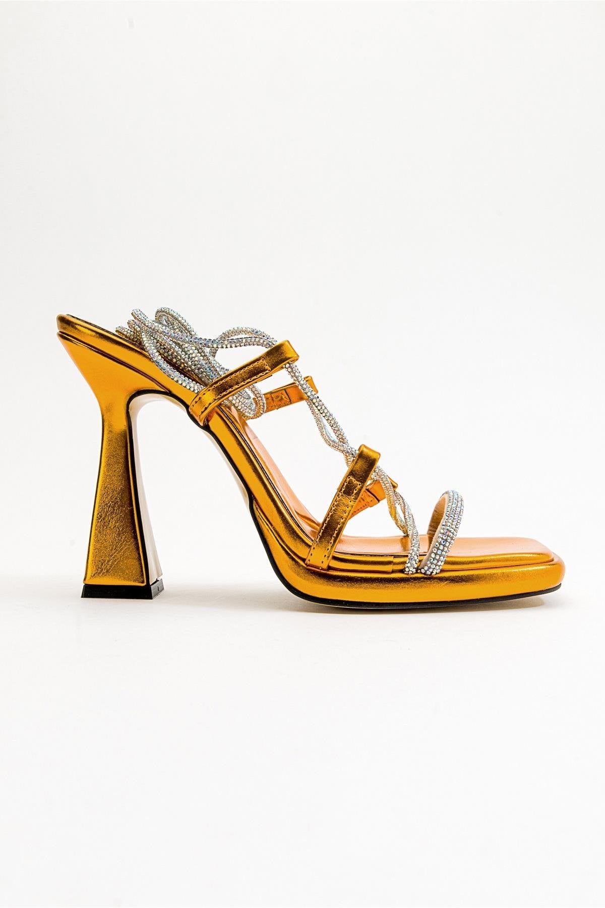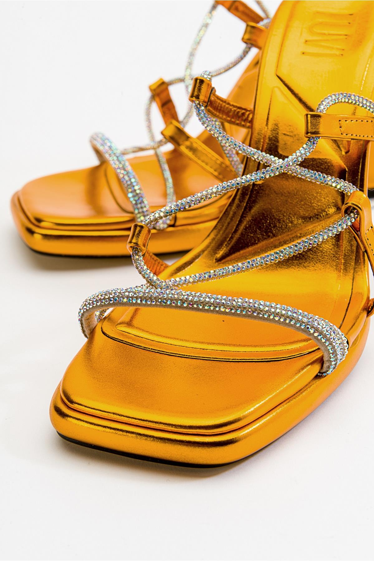 A statement sandal defined by modern lines and glamorous flair | 4.7" (12 cm) heel (0.8" (2 cm) platform) | Synthetic leather upper / synthetic leather lining / neolite sole | Handmade in Turkey, true to size