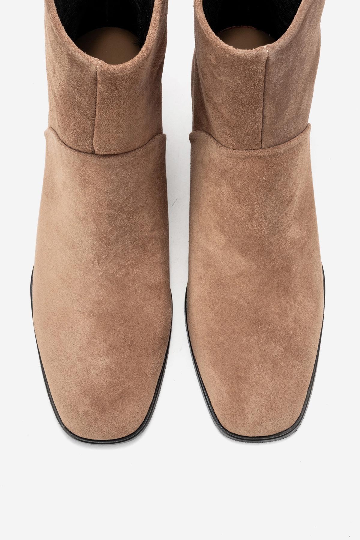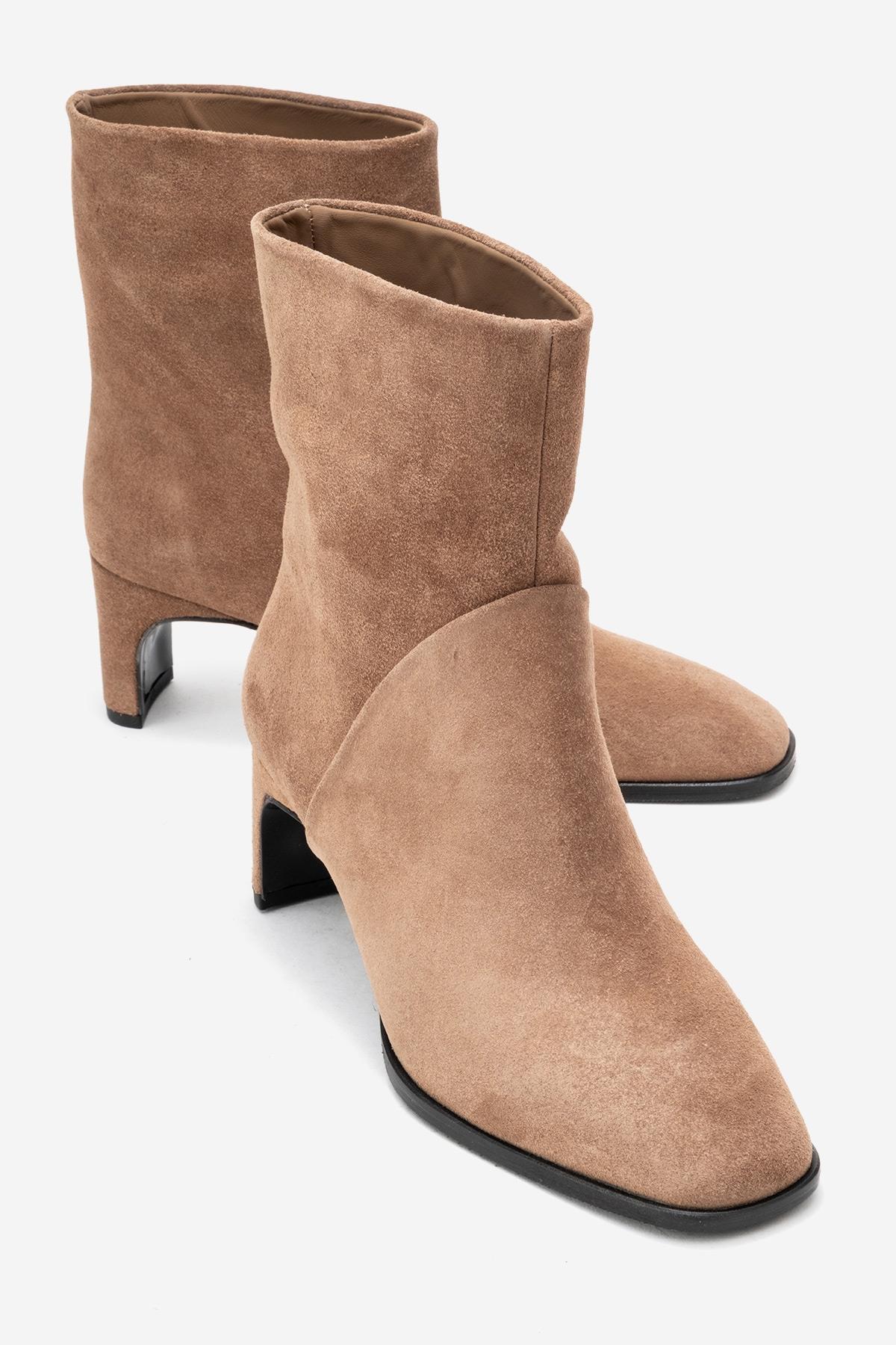 A refined block-heel boot that elevates natural suede with timeless architecture