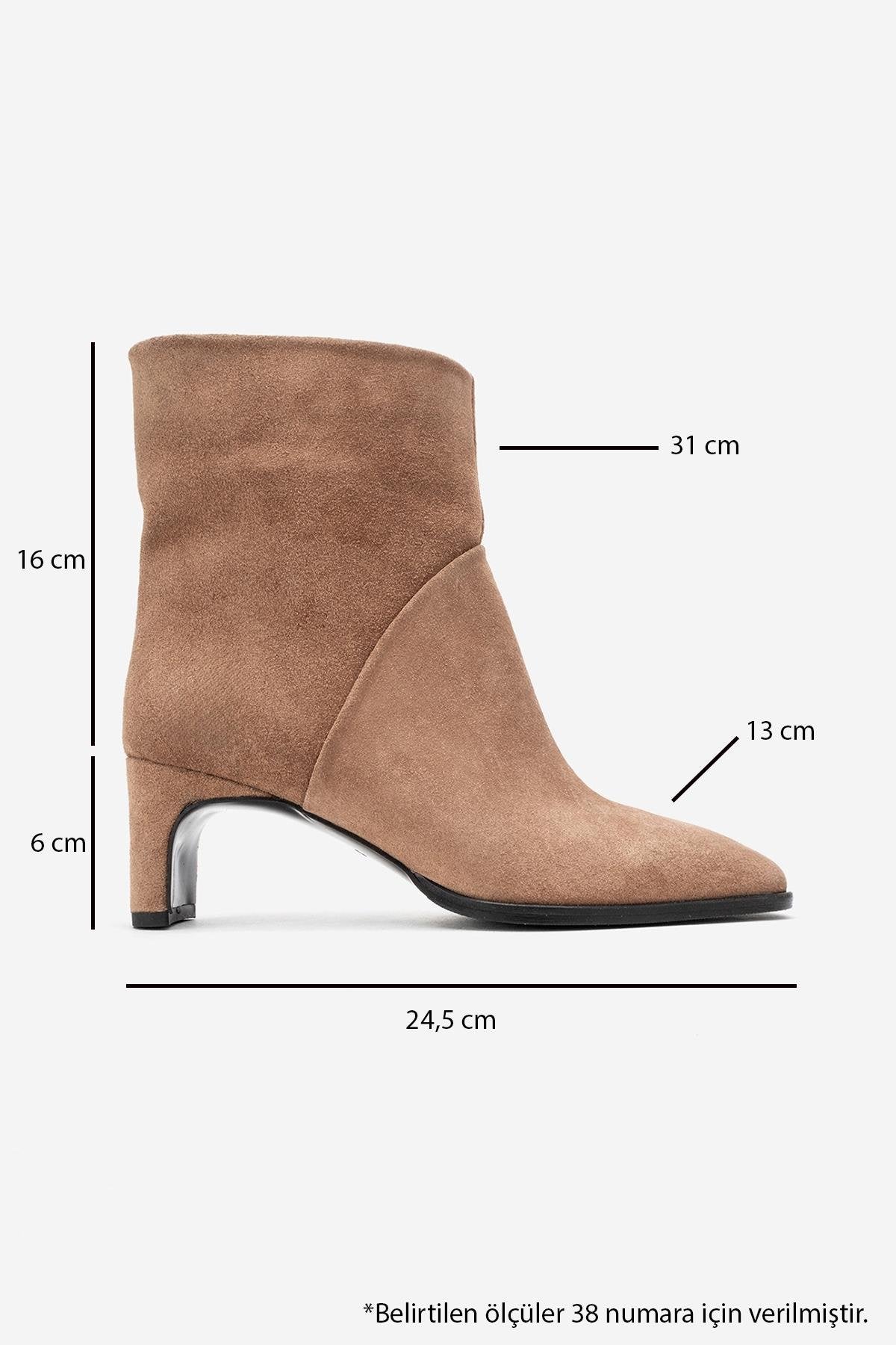 A refined block-heel boot that elevates natural suede with timeless architecture | 2.3" (6 cm) heel | 6.2" (16 cm) shaft | 12.1" (31 cm) ankle circumference | 5.1" (13 cm) forefoot width | Genuine suede leather upper / Genuine leather and warm lining / Neolite sole