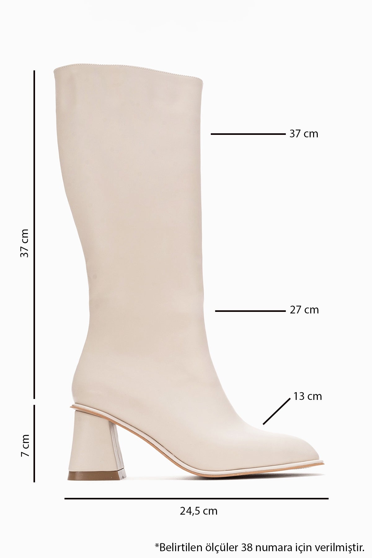 A sculpted knee-high boot that balances timeless elegance with modern minimalism | 2.8" (7 cm) heel | 14.6" (37 cm) shaft | 10.5" (27 cm) ankle circumference | 14.6" (37 cm) calf circumference | 5.1" (13 cm) forefoot width | Synthetic leather upper / Warm lining / Neolite sole | Handmade in Turkey, true to size