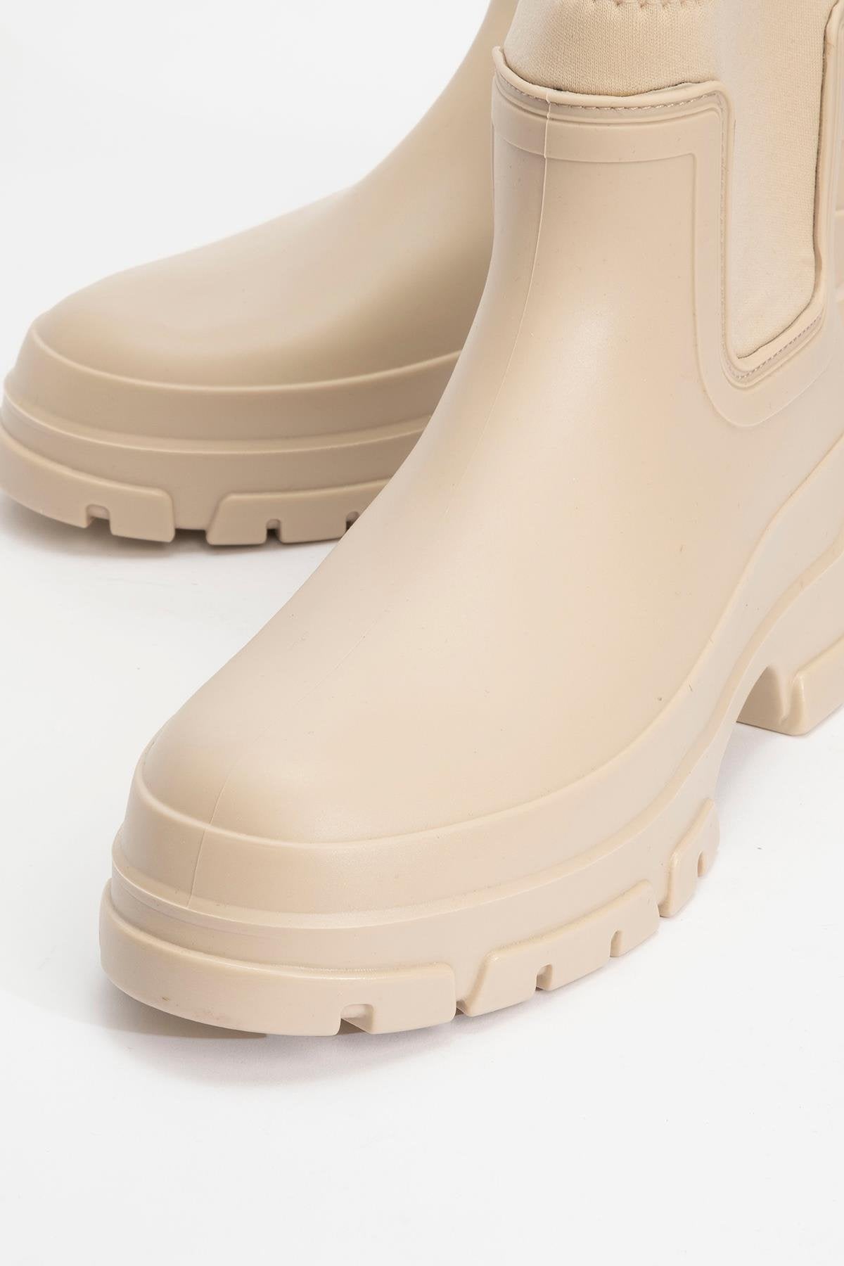 A fully waterproof rain boot crafted for modern city life with functional, stylish details