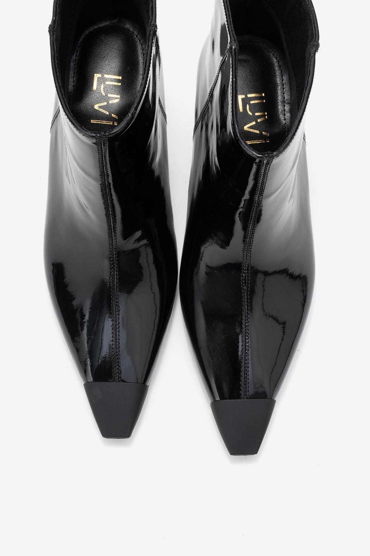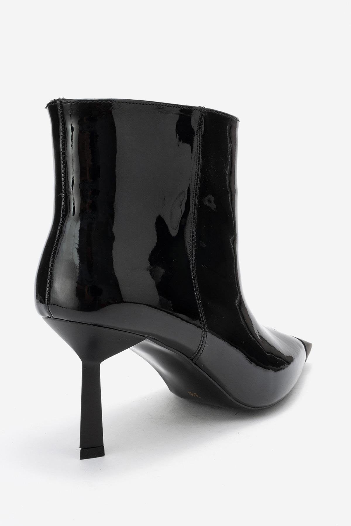 A glossy patent boot that elevates both day and evening looks with a luminous, sculpted finish