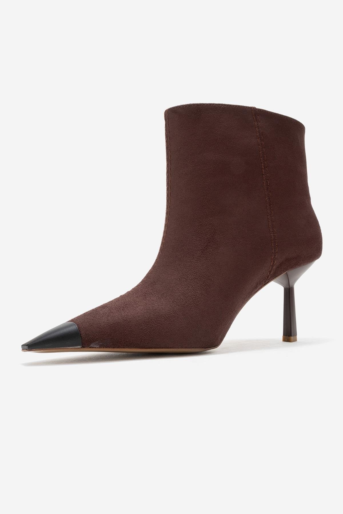 An elegant slim-heel boot that balances refined lines with wearable comfort | 2.9" (7.5 cm) heel | 4.3" (11 cm) shaft | 12.9" (33 cm) ankle circumference | 4.7" (12 cm) forefoot width | Synthetic suede upper / synthetic suede and warm lining / neolite sole | Handmade in Turkey, true to size