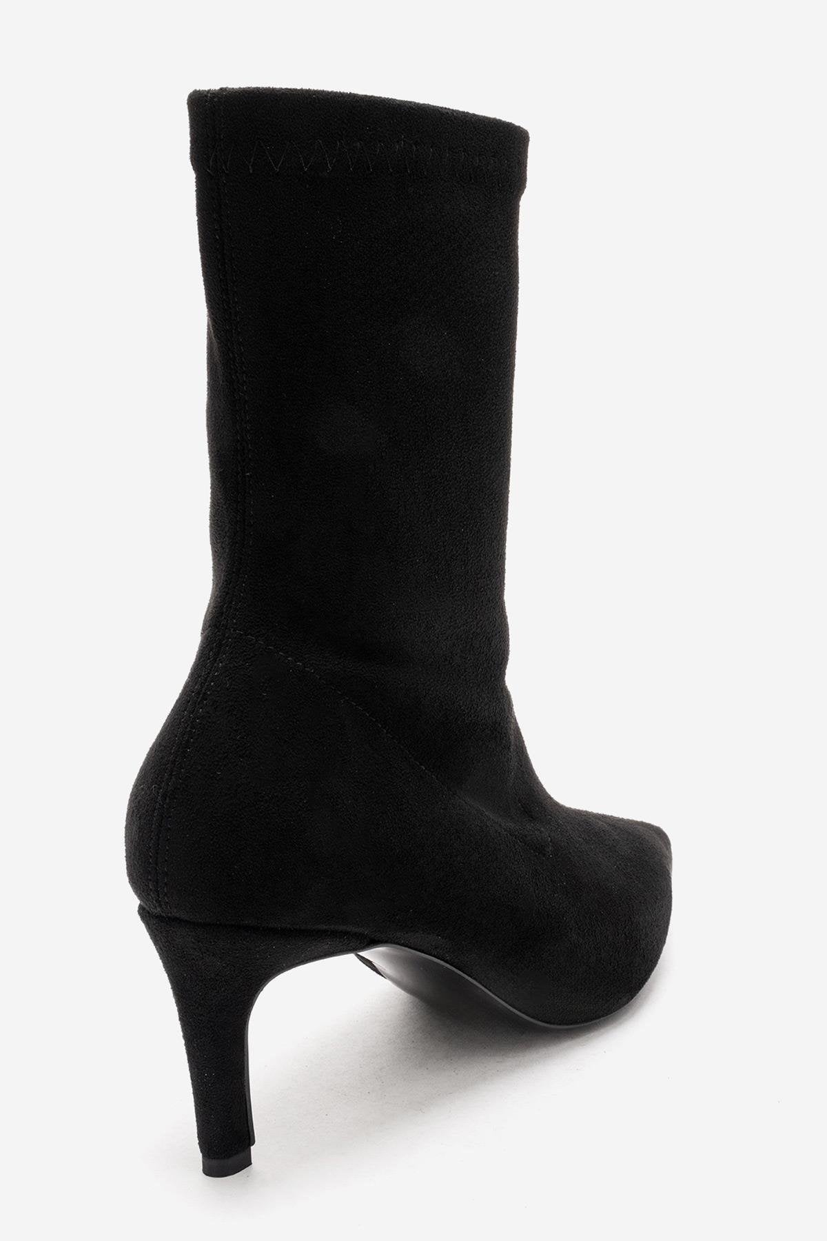 A refined stiletto boot with a velvety suede effect and timeless femininity