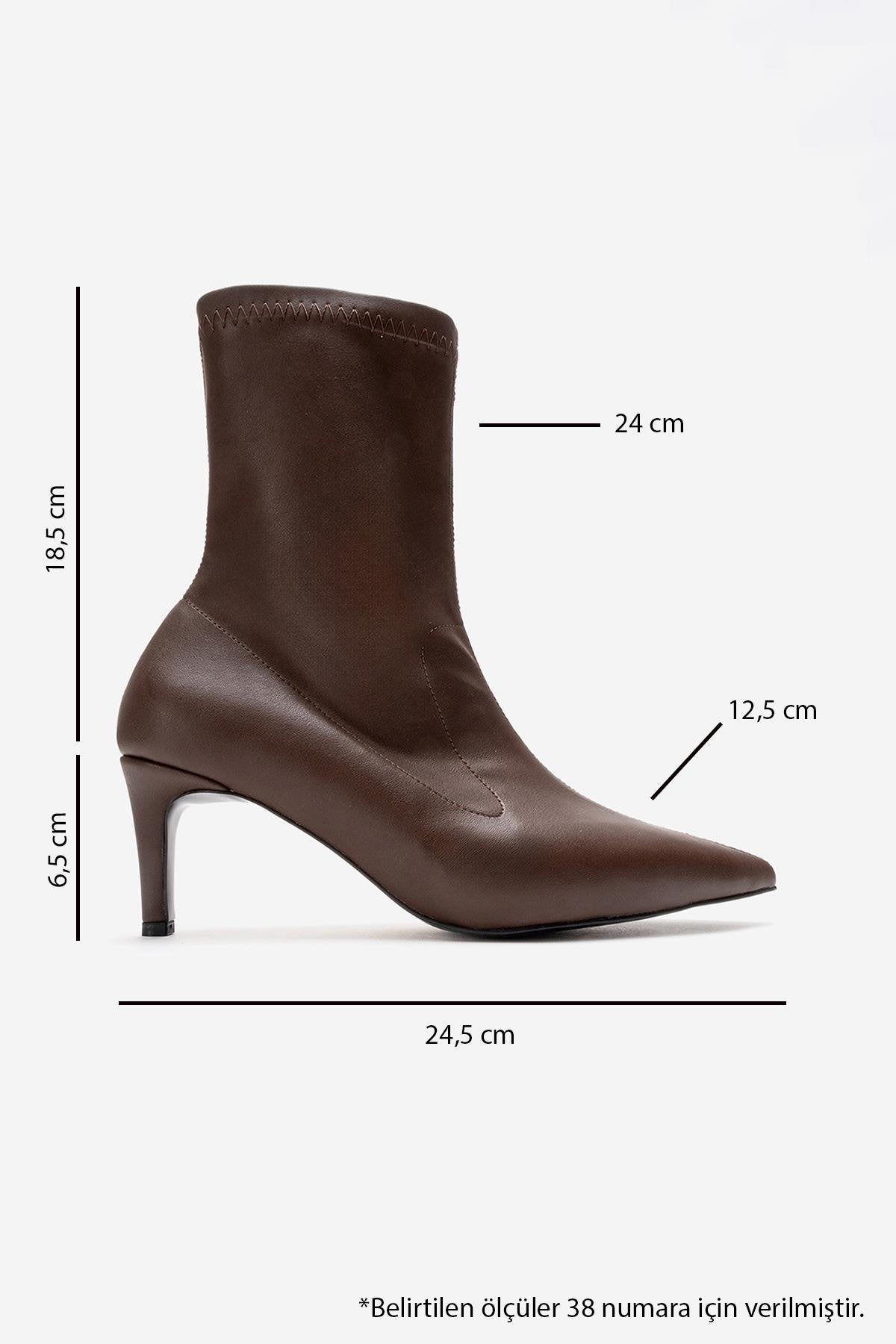 A sophisticated stiletto-heel boot that elevates classic styling with a streamlined silhouette | 2.5" (6.5 cm) heel | 7.2" (18.5 cm) shaft | 9.4" (24 cm) ankle circumference (stretchable) | 4.9" (12.5 cm) forefoot width | Synthetic leather upper / Textile lining / Neolite sole | Handmade in Turkey, true to size
