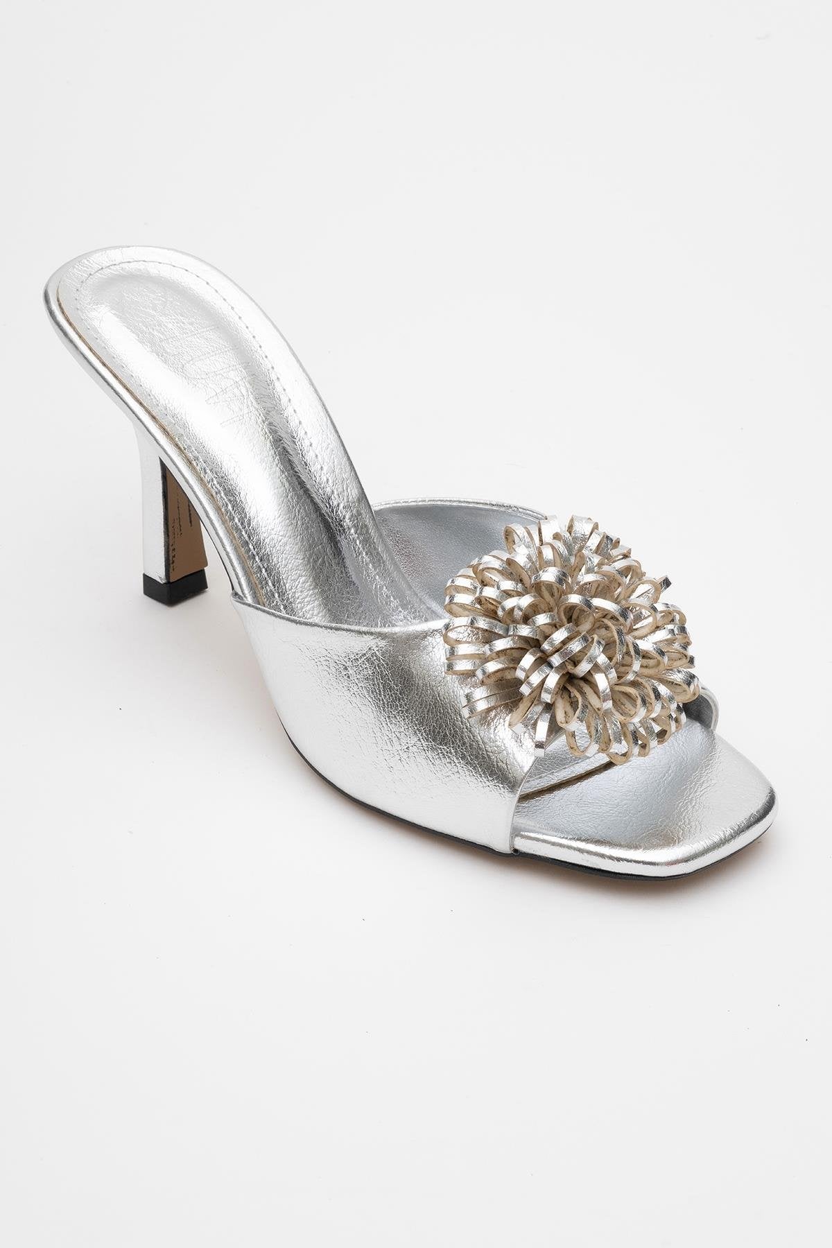 A sparkling stiletto sandal that fuses delicate floral detailing with nighttime glamour | 3.9" (10 cm) heel | 5.3" (13.5 cm) forefoot width | Synthetic leather upper / Synthetic leather lining / neolite sole | Handmade in Turkey, true to size