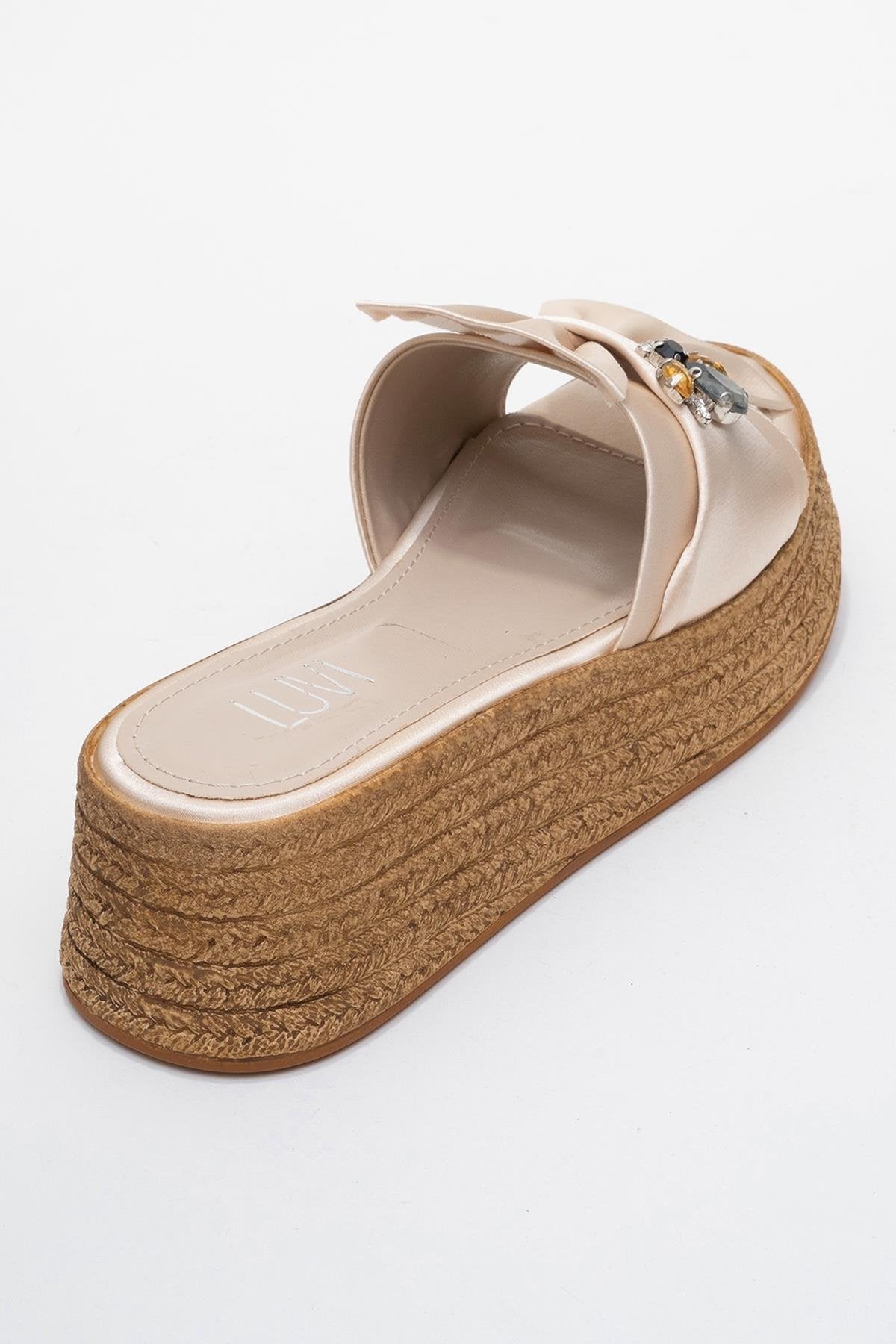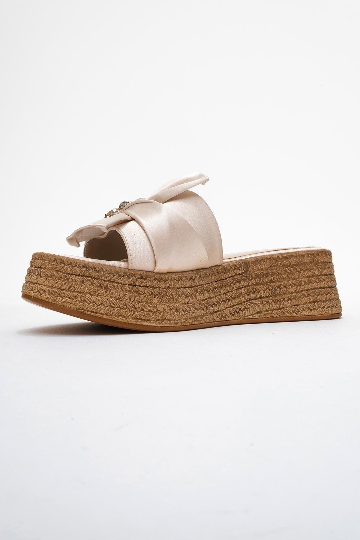 Shara Beige Satin Bow & Bee Buckle Platform Sandal (Women)
