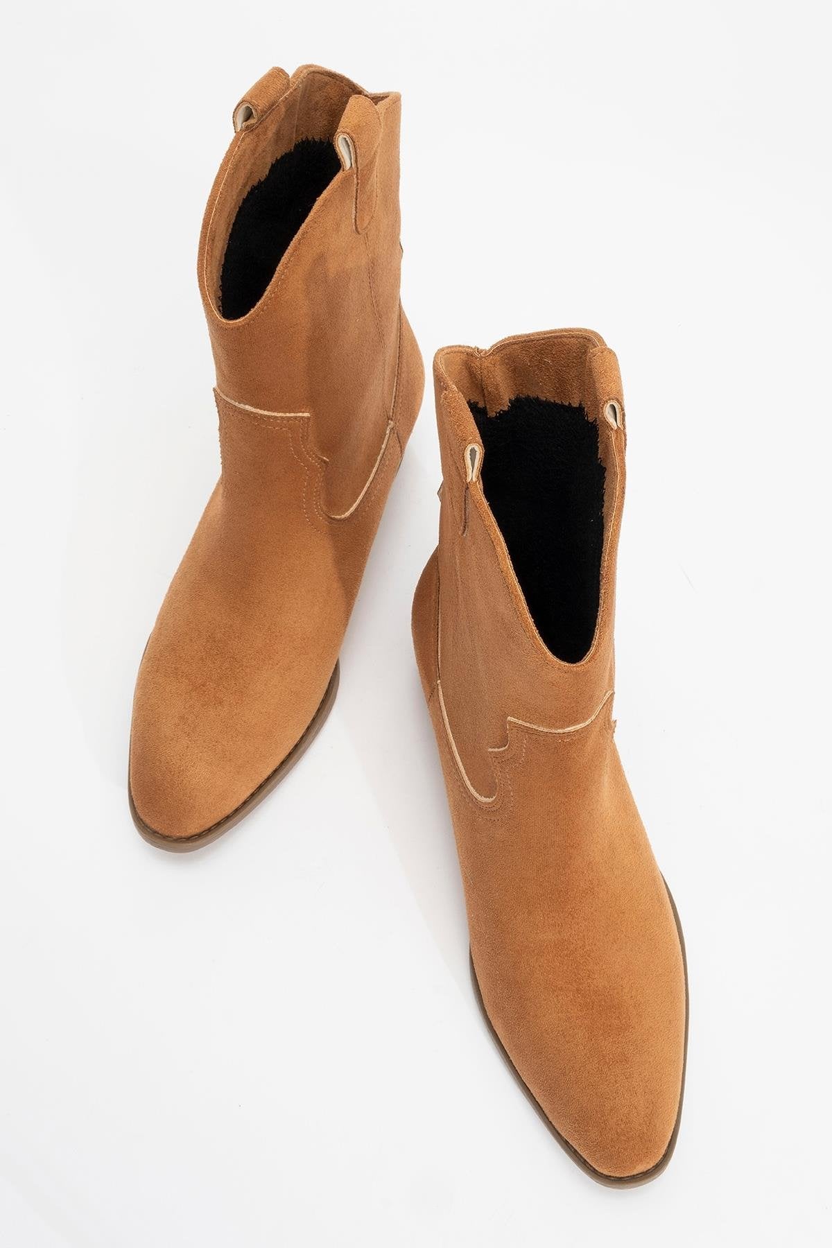A modern Western-inspired ankle boot that blends rugged comfort with refined detailing | 1.6" (4 cm) heel | 7.0" (18 cm) shaft | 11.7" (30 cm) ankle circumference | 5.1" (13 cm) forefoot width | Synthetic leather upper / synthetic leather & warm lining / rubber sole | Handmade in Turkey, true to size