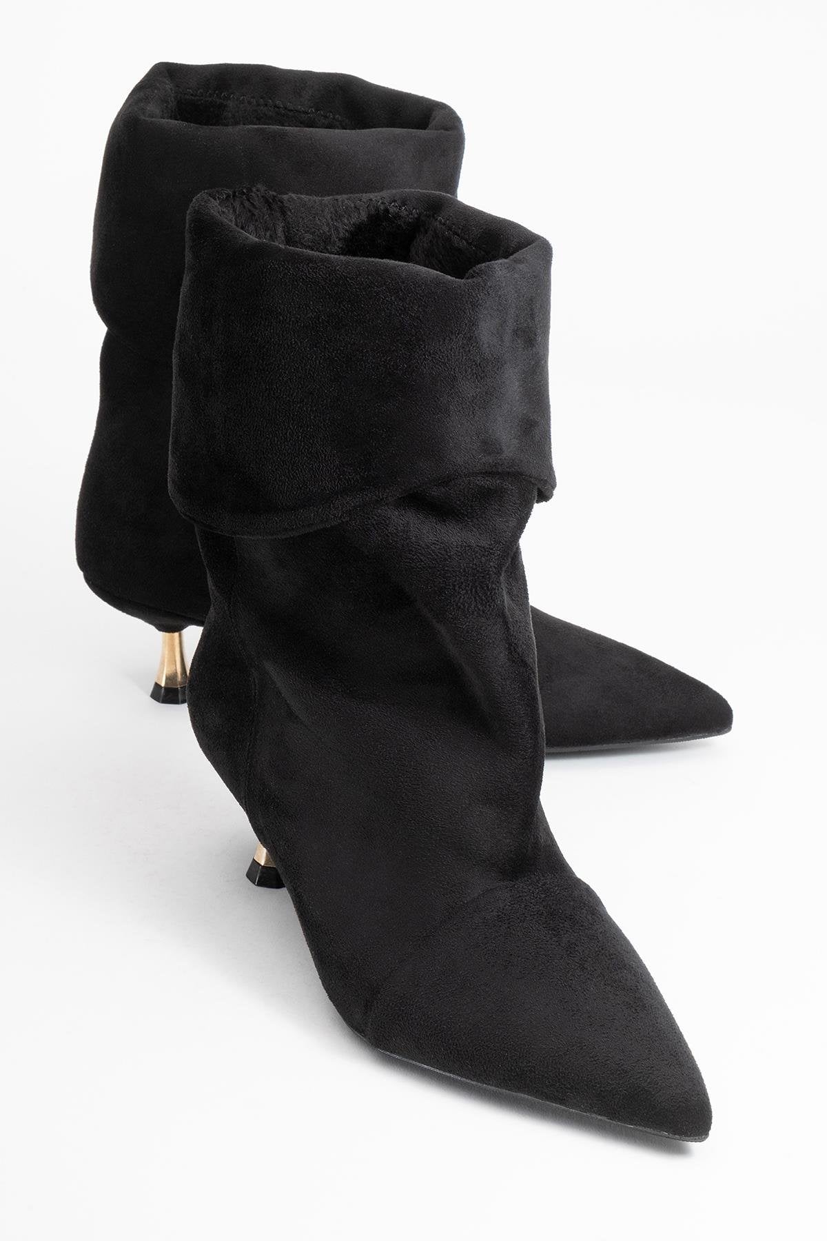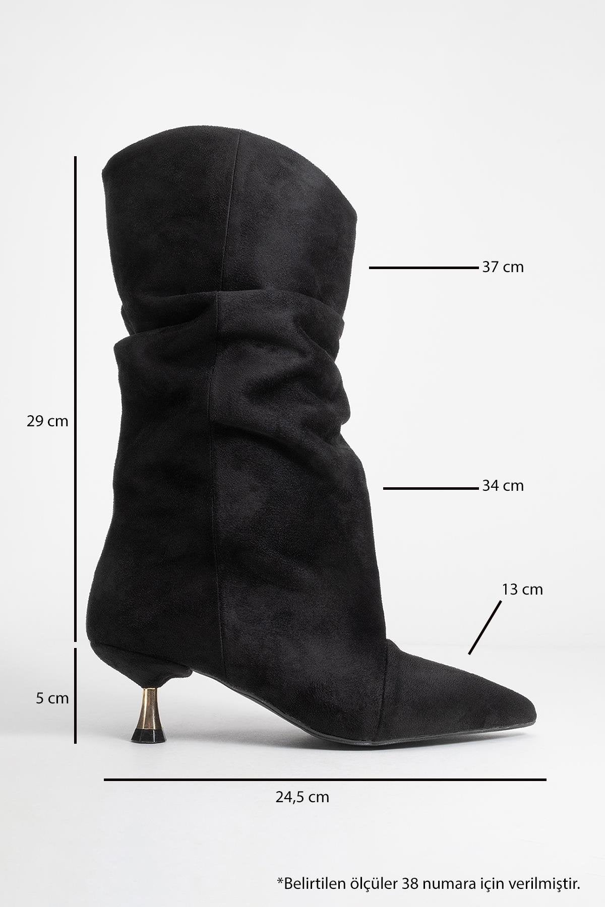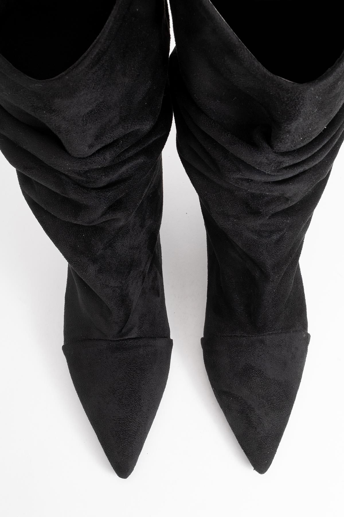 A bold ankle boot that pairs sculptural draping with a sleek pointed toe for dramatic evening style | 2.0" (5 cm) heel | 11.3" (29 cm) shaft | 13.3" (34 cm) ankle circumference | 14.4" (37 cm) calf circumference | 5.1" (13 cm) forefoot width | Synthetic suede upper / warm lining / TPU sole | Handmade in Turkey, true to size