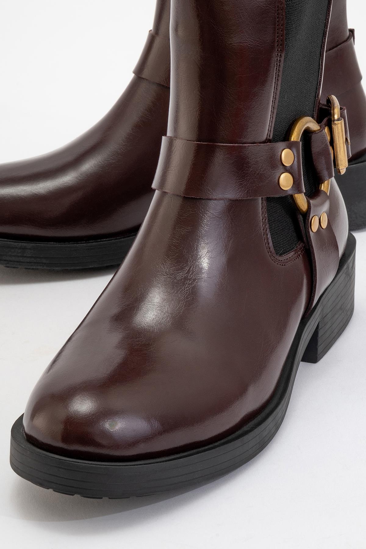 A bold, statement boot that pairs edgy hardware with refined construction | 1.6" (4 cm) heel | 7.4" (19 cm) shaft | 10.5" (27 cm) ankle circumference | 5.1" (13 cm) forefoot width | Synthetic leather upper / synthetic leather warm lining / TPU sole | Handmade in Turkey, true to size