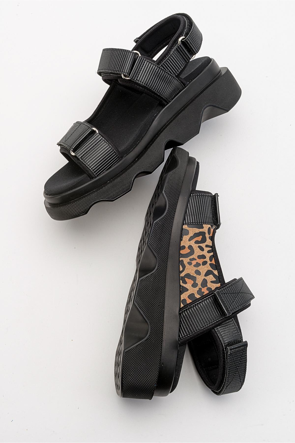 A contemporary patterned sandal that pairs sculptural lines with all-day wearability | 2.0" (5 cm) heel | Synthetic leather/textile upper / textile lining / polyurethane sole | Handmade in Turkey, true to size