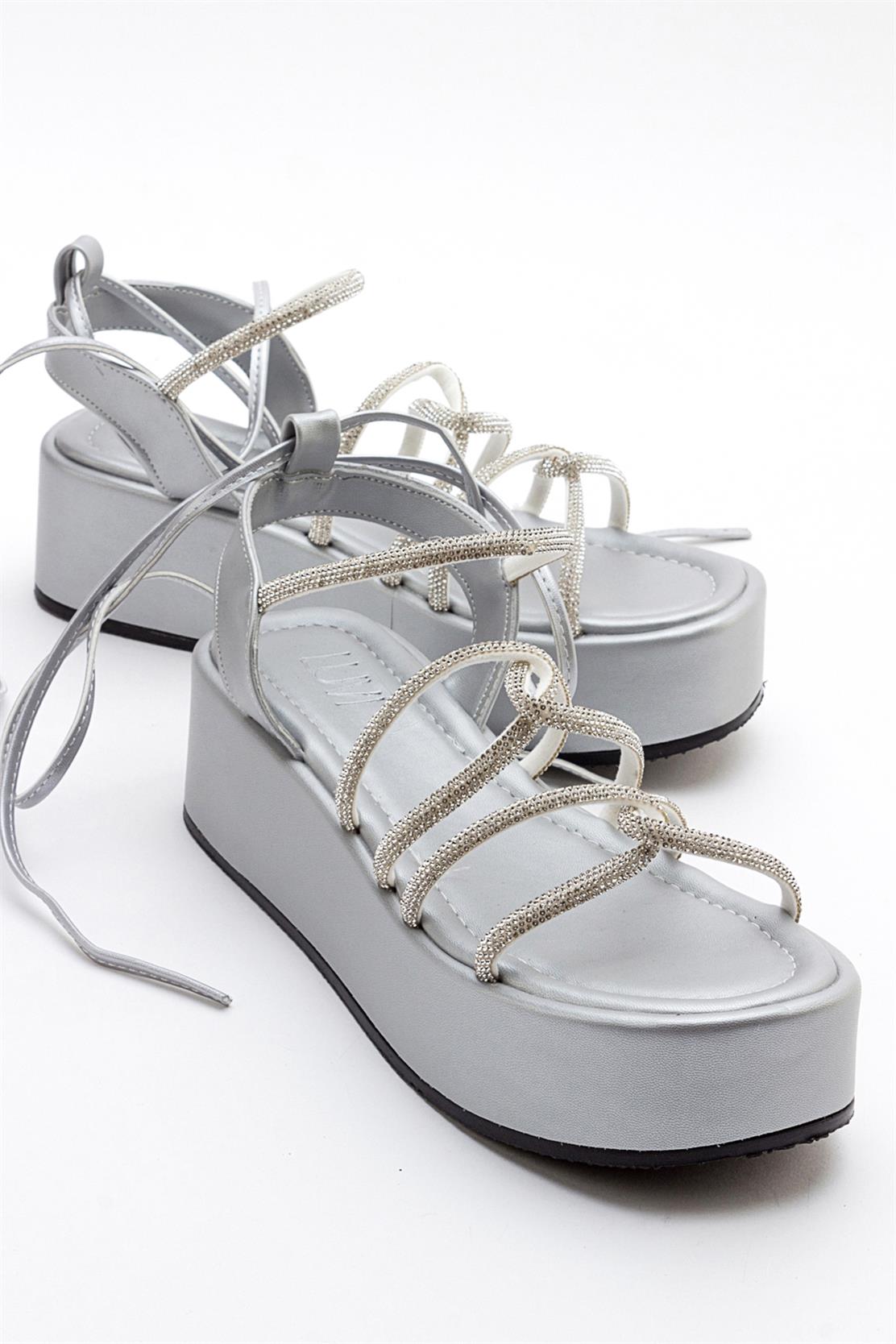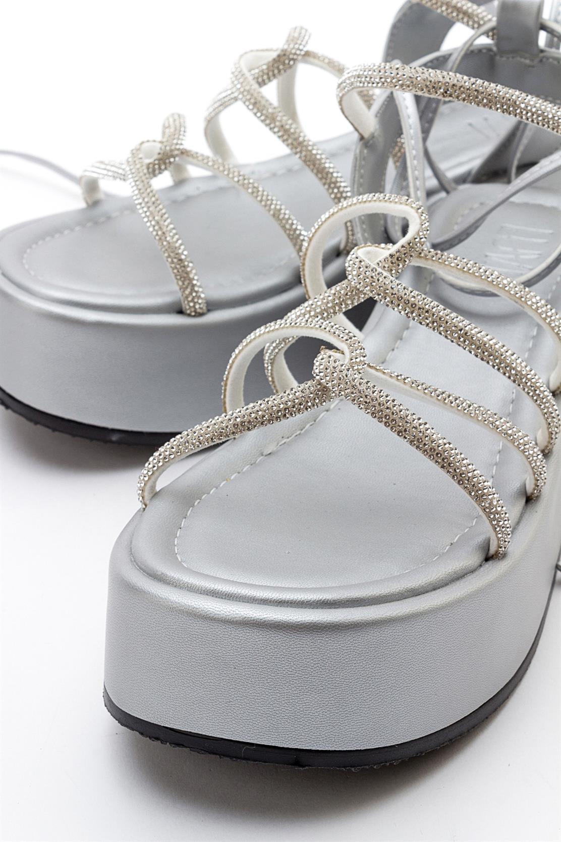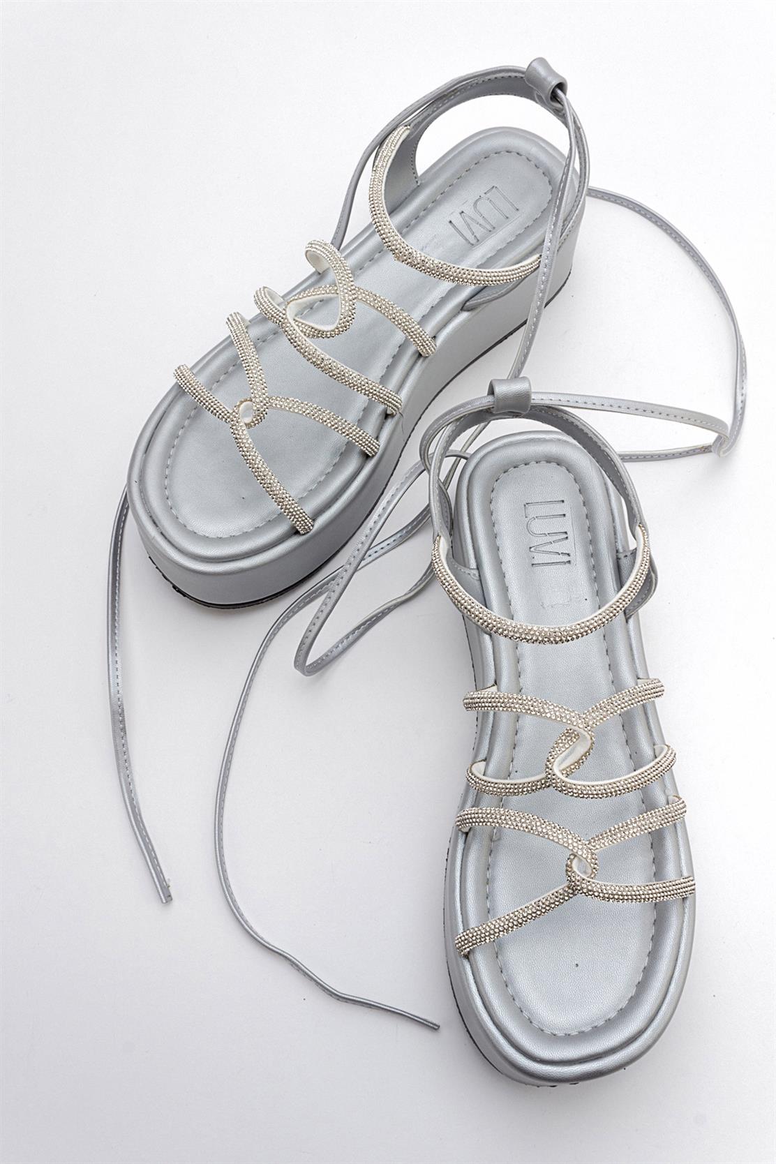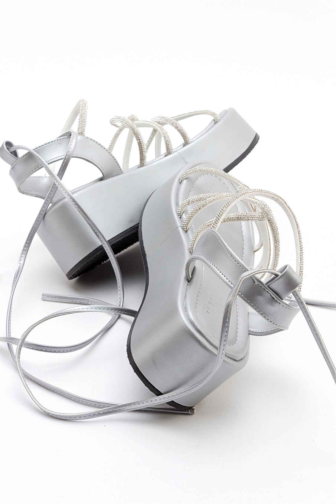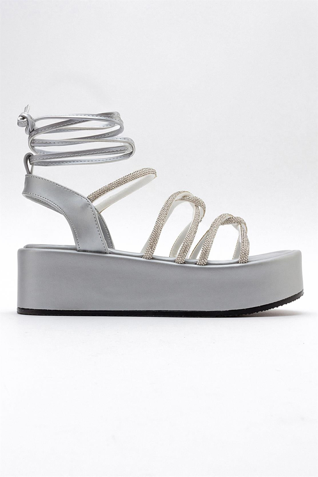 A chic ankle-wrap sandal accented with stone embellishments for refined sparkle | 2.3" (6 cm) heel | Synthetic leather upper / synthetic leather lining / polyurethane sole | Handmade in Turkey, true to size