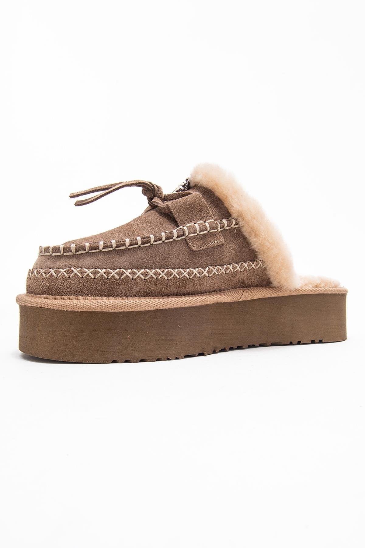 A modern platform moccasin that pairs traditional hand-stitching with plush lining for cozy sophistication | 1.6" (4 cm) heel | 6.0" (15.5 cm) forefoot width | Genuine leather upper / genuine sheepskin fur lining / EVA sole | Handmade in Turkey, true to size