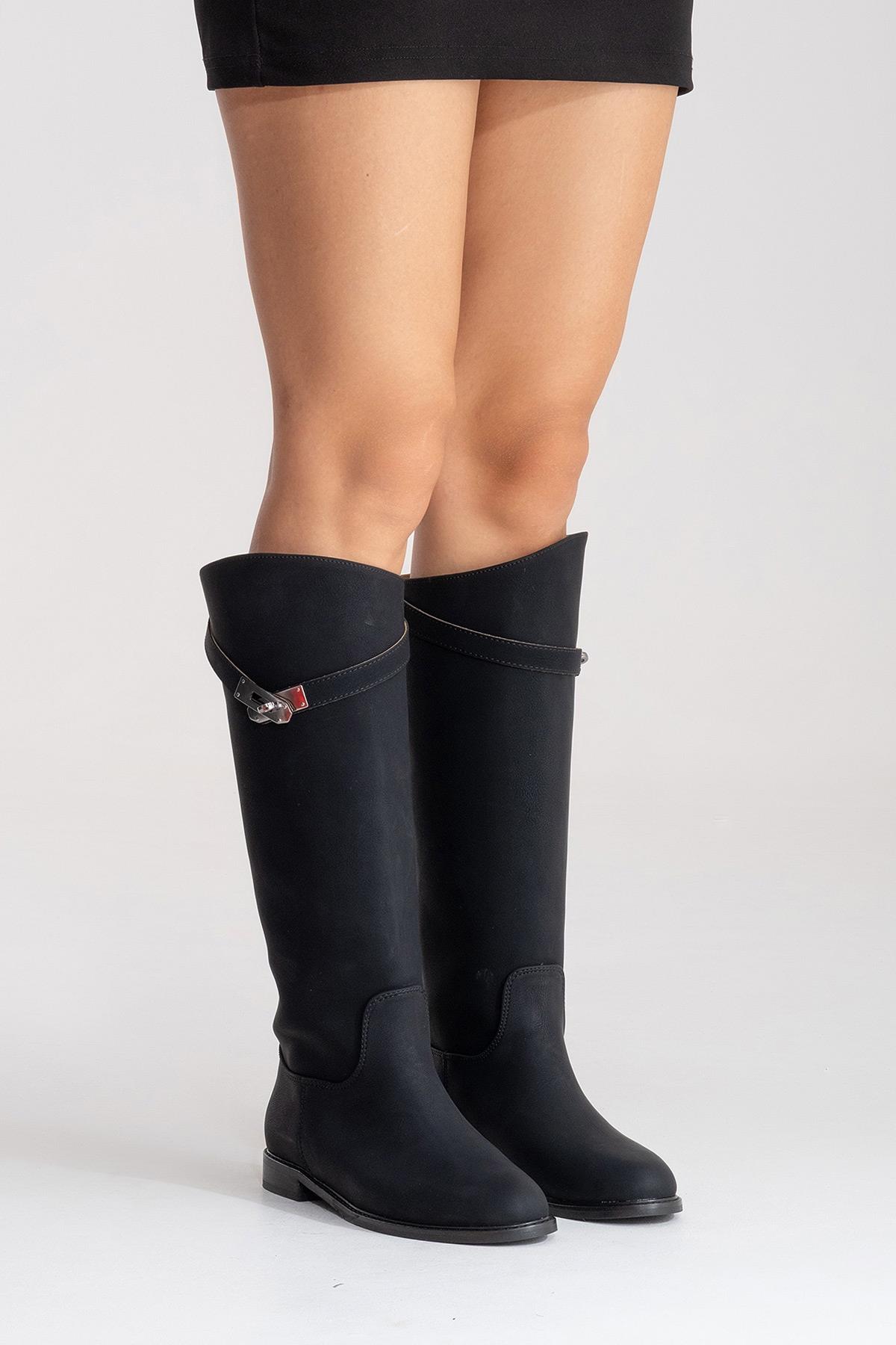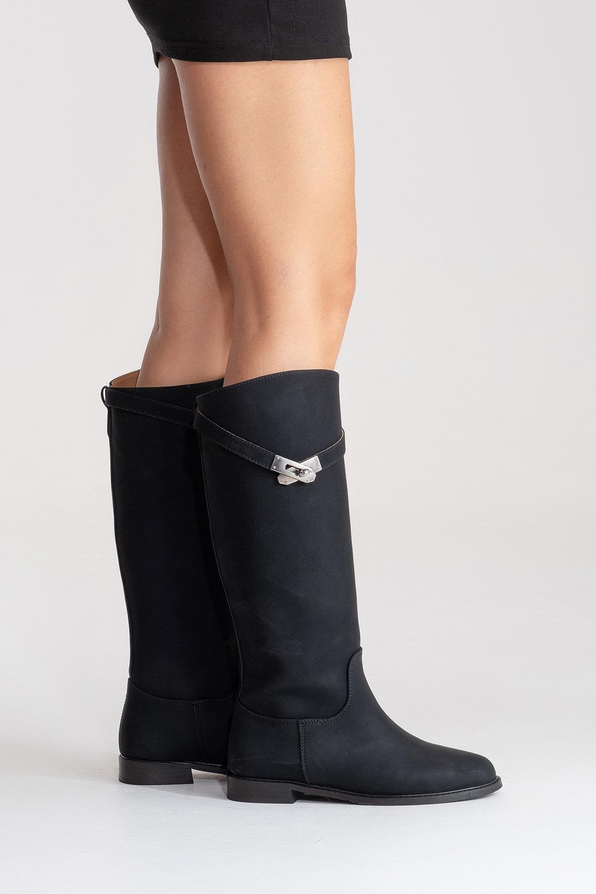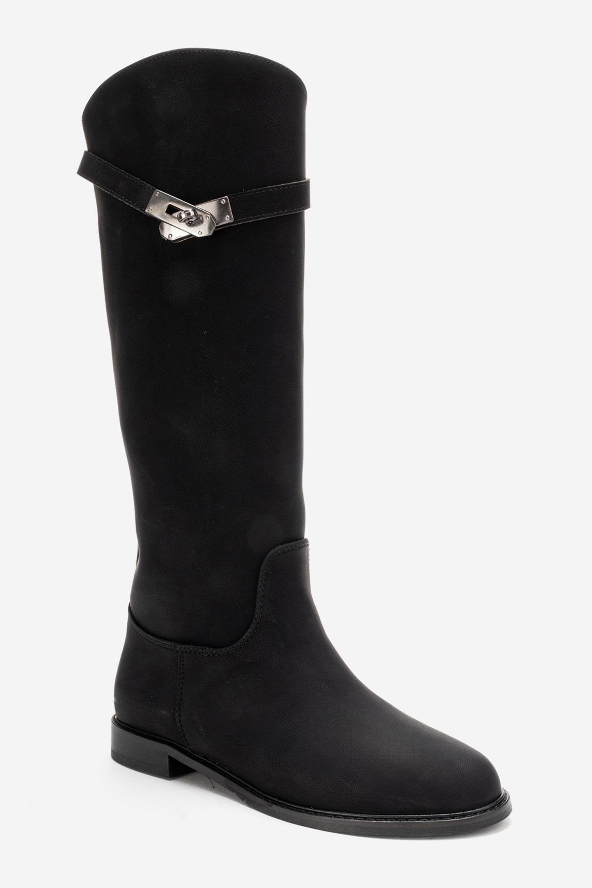 A polished riding boot that brings refined strength to everyday city dressing | 1.0" (2.5 cm) heel | 15.4" (39 cm) shaft | 12.2" (31 cm) ankle circumference | 15.0" (38 cm) calf circumference | 5.5" (14 cm) forefoot width | Synthetic leather upper / Warm lining / TPU sole | Handmade in Turkey, true to size