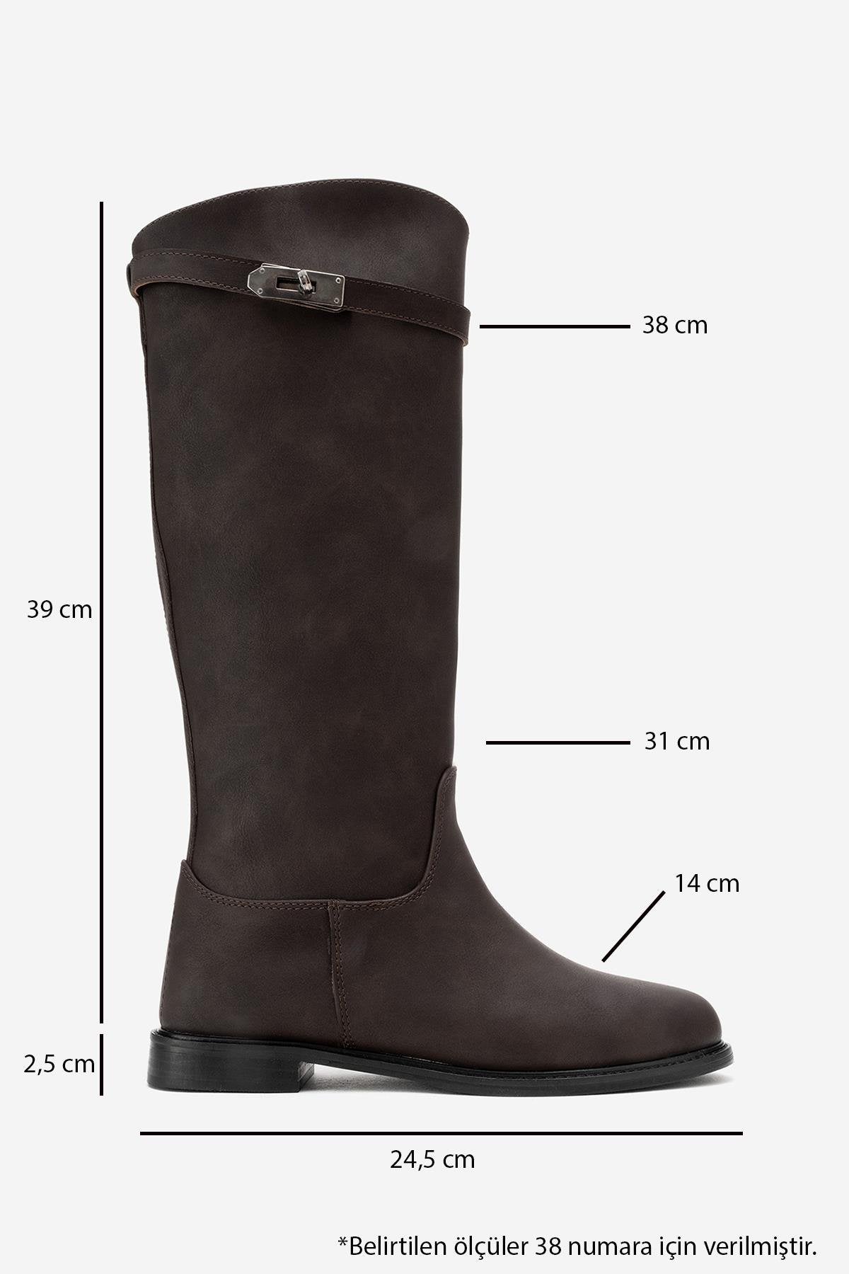 A sleek riding boot with minimalist lines and subtle hardware for effortless urban polish | 1.0" (2.5 cm) heel | 15.2" (39 cm) shaft | 12.1" (31 cm) ankle circumference | 14.8" (38 cm) calf circumference | 5.5" (14 cm) forefoot width | Synthetic leather upper / warm lining / TPU sole | Handmade in Turkey, true to size
